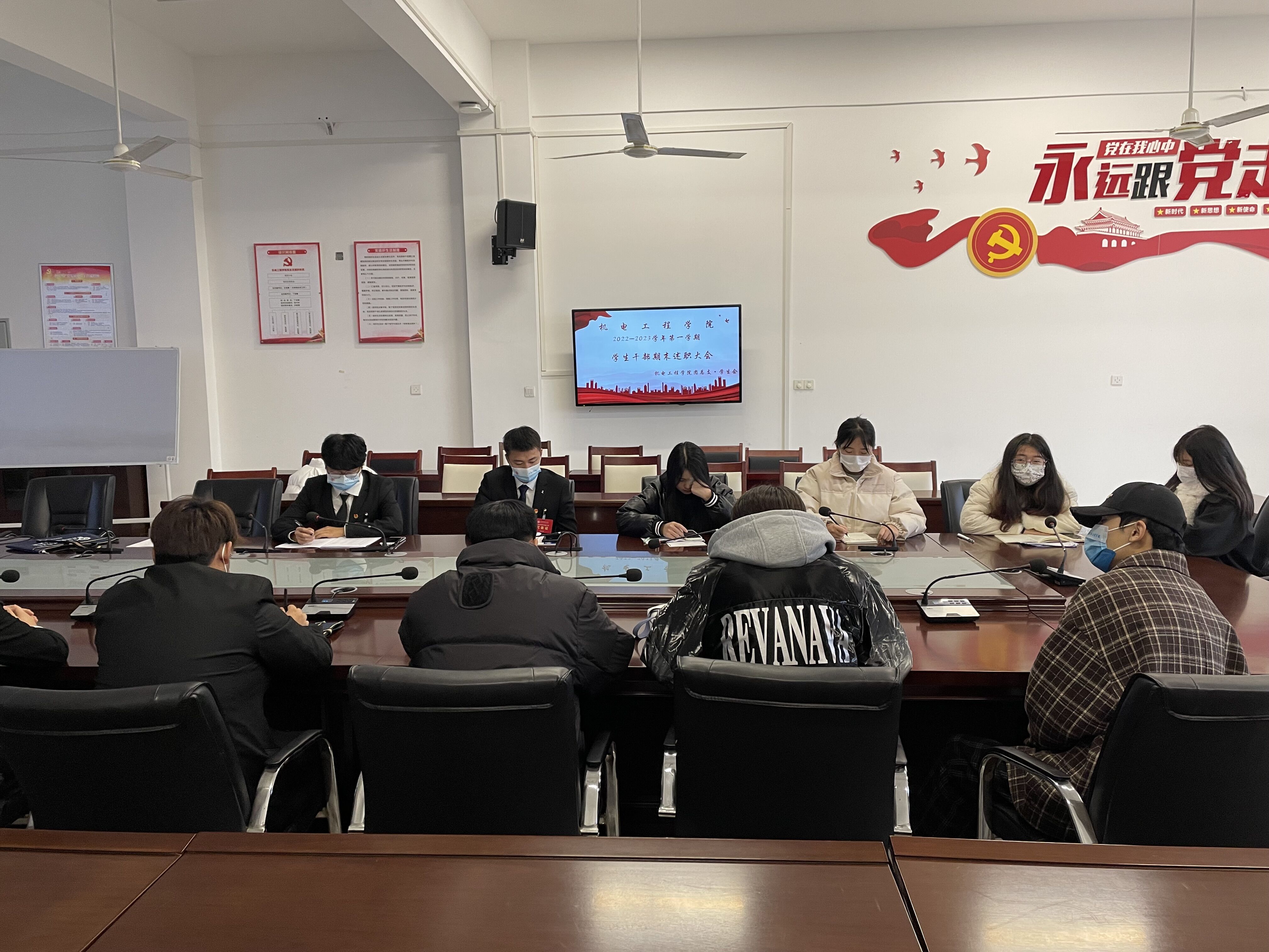 为深入学习贯彻党的二十大精神,进一步加强学院学生组织建设,促进学生组织工作制度化、规范化、系统化,12月10日下午,机电工程学院团总支学生会组织召开期末学生会干部述职大会,团总支书记张开以及团学干部代表参加会议。