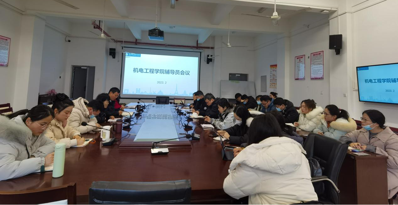 为确保2023年春季新学期开好局、起好步,全面统筹各项工作落实落细。2月9日上午,机电工程学院召开学期初辅导员工作会议。学院党政负责人、专职辅导员及在校班级辅导员参加会议。会议由学管办主任杨晨主持。