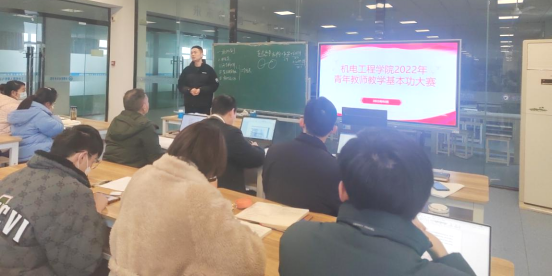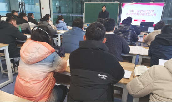 比赛的主要形式为板书教学演示10分钟,评委们参照校赛的要求,对青年教师教案设计、授课内容、教学活动、教学语言、教态和板书、教学效果以及整体印象等7个方面对参赛选手进行了认真细致地打分。演示过程中,参赛教师准备充分,表达流畅,知识结构合理、重点突出、衔接自然语言生动严谨,准确流畅,表达清晰,板书设计恰当,完美展示了机电工程学院教师的良好职业素养。3位评委分别对每位比赛选手进行点评,也提出了老师们存在的一些问题:一是思政元素没有很好地融合到教学过程中;二是教案的规范性还有待加强;三是重难点的把握还不够合理,希望老师们能够再接再厉,不断提高教学水平。