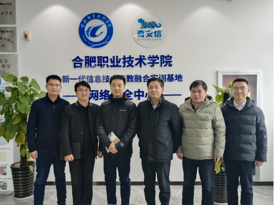 王程辉一行首先参观了网络安全产业学院,随后在网络安全形势研判会议室召开了网络安全人才培养和产教融合为主题的座谈会。学院党政领导分别对来访的客人表示热烈欢迎,介绍了学校发展历程、学院专业布局、教育教学改革、学生实习就业和产业学院建设背景及建设成果。双方就如何转变行业经验为教学资源、构建网络完全人才培养体系、夯实产学研长效机制、打造校企合作订单班、输送优秀人才支撑合肥市网络安全产业发展等方面开展交流。