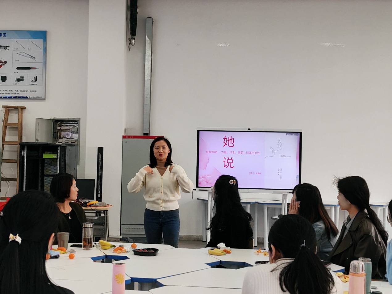 活动分为两部分,第一部分为“她说”主题分享,首先,由党总支书记佘海月为大家带来了“亲疏有度,远近相安”为主题的婆媳相处之道,让大家了解“爱、包容和换位思考”是婆媳相处的制胜法宝。随后,梁雯婷老师为大家来主题为“力量、汗水、美丽,同属于女性”的自我管理方法,为大家分享健身和美妆的的小妙招。女职工们在轻松愉快的氛围中敞开心扉、畅所欲言。第二部分“她做”破冰游戏,孙月老师组织大家完成“合力建塔”“蒙眼互打”的小游戏,活动现场老师们欢声笑语,热闹非凡,大家在轻松和谐的氛围中享受着运动的快乐,尽情展示巾帼风采。