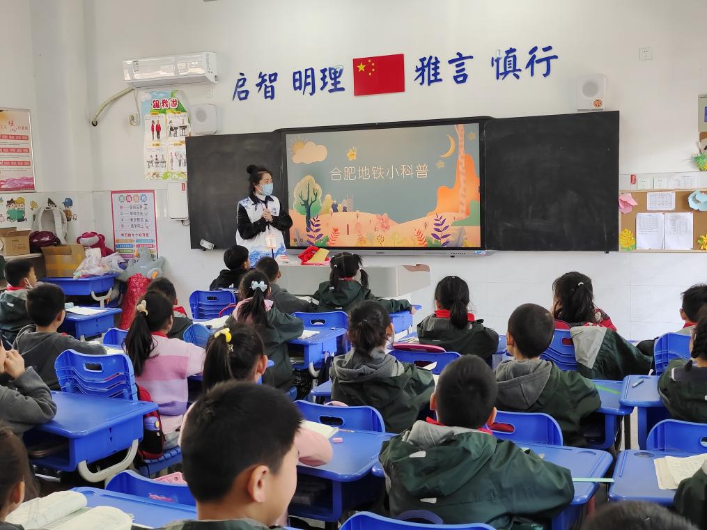 活动现场,学院的大学生志愿者们帮助小学生们认识到了各个城市的地铁标志,介绍了合肥轨道各条地铁线路情况,普及了地铁乘车安全等乘坐地铁的生活常识,科普内容丰富,讲解形式多样,志愿者们通过深入浅出、寓教于乐的趣味体验和互动课程,点燃了小朋友们求索新知的好奇心,激发他们对科学的兴趣。小朋友们全神贯注的聆听讲解,志愿者也认真对小朋友们提出的问题作出解释和回答。