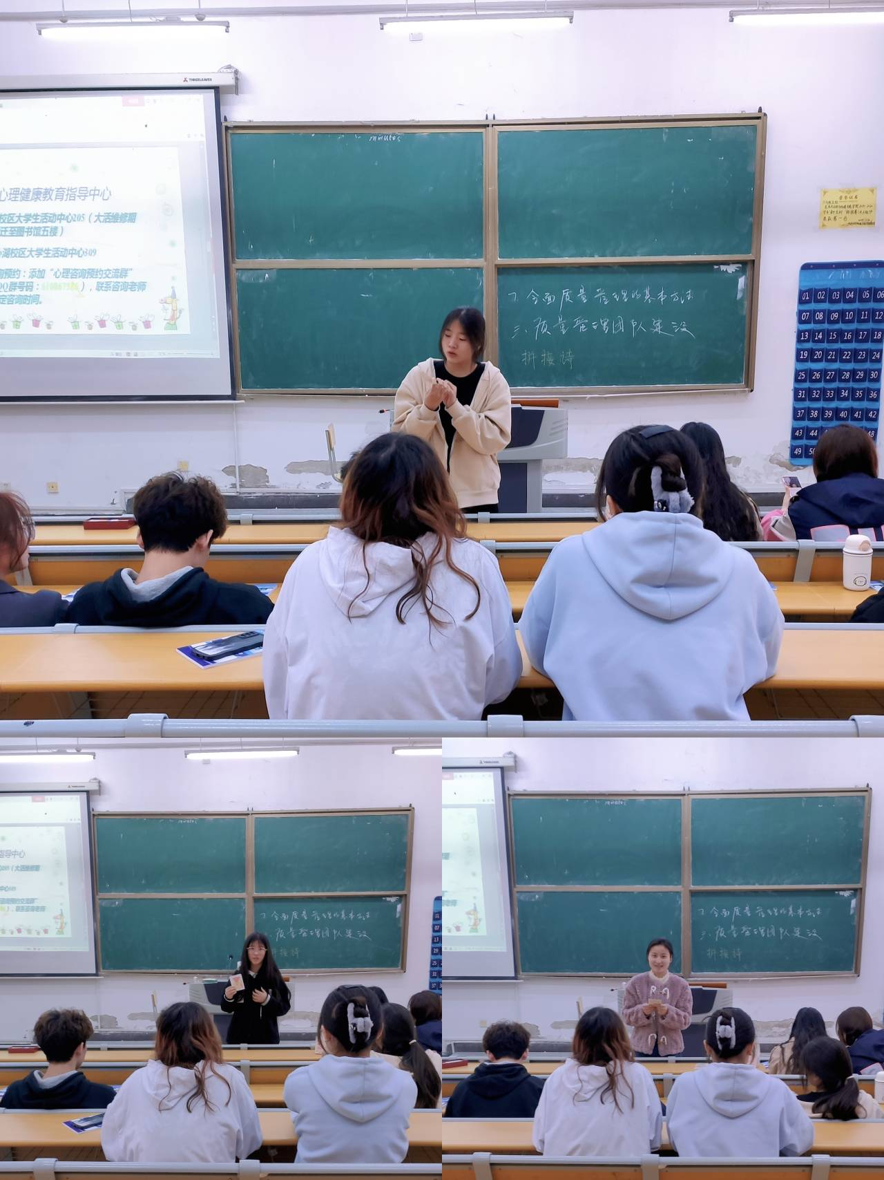 汪老师向心理委员们简单地介绍了本次活动流程后,紧接着开展了第一项内容,对心理委员的职责进行说明和强调。汪老师提出心理委员一方面应主动关心班级同学的心理健康,发现异常要及时向辅导员和心理老师报告。另一方面,心理委员应大力宣传院、校的心理活动并鼓励班级同学积极参加。在日常生活中,争做心理健康教育知识的传声员。