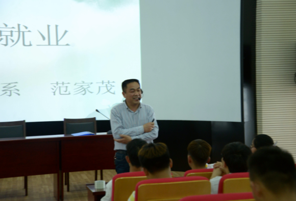 讲座开始,范主任从学生实习与就业的目的着手,引入此次讲座的内容,分别从建筑工程类专业学生的出路、专业岗位设置以及学生在实习时的注意事项进行讲授。