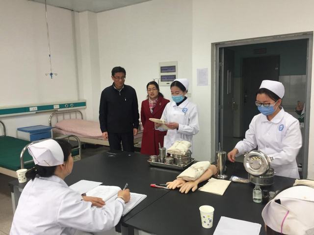 医学分院2018届护理、助产专业1005名学生即将于4月底至5月上旬进入临床毕业实习阶段。在院教务处实训中心的协助下,医学分院以“打好基础,务实实用”为护理业务技能宗旨,于3月18、19日两天对学生进行岗前综合技能考核。学院副院长孙兴林来到考核现场检查指导相关工作。