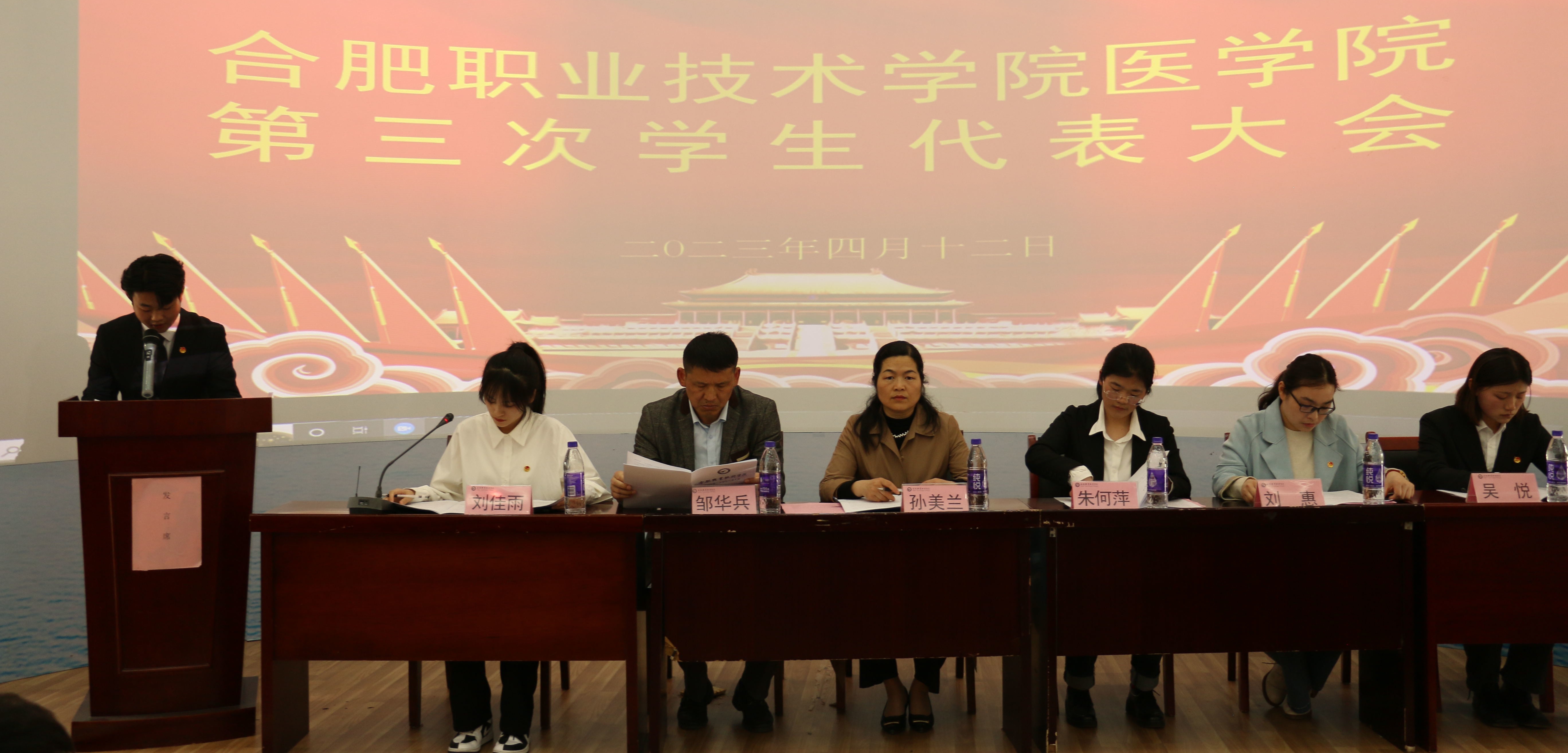 大会在庄严的国歌声中拉开序幕,医学院团总支书记刘惠致开幕词并代表大会主席团和全体代表向会议的召开表示热烈地祝贺,希望各位学生代表们,以饱满的政治热情,主人翁的意识和高度负责的态度,同心同德,共商大计,谋求发展,一起圆满完成大会各项任务。