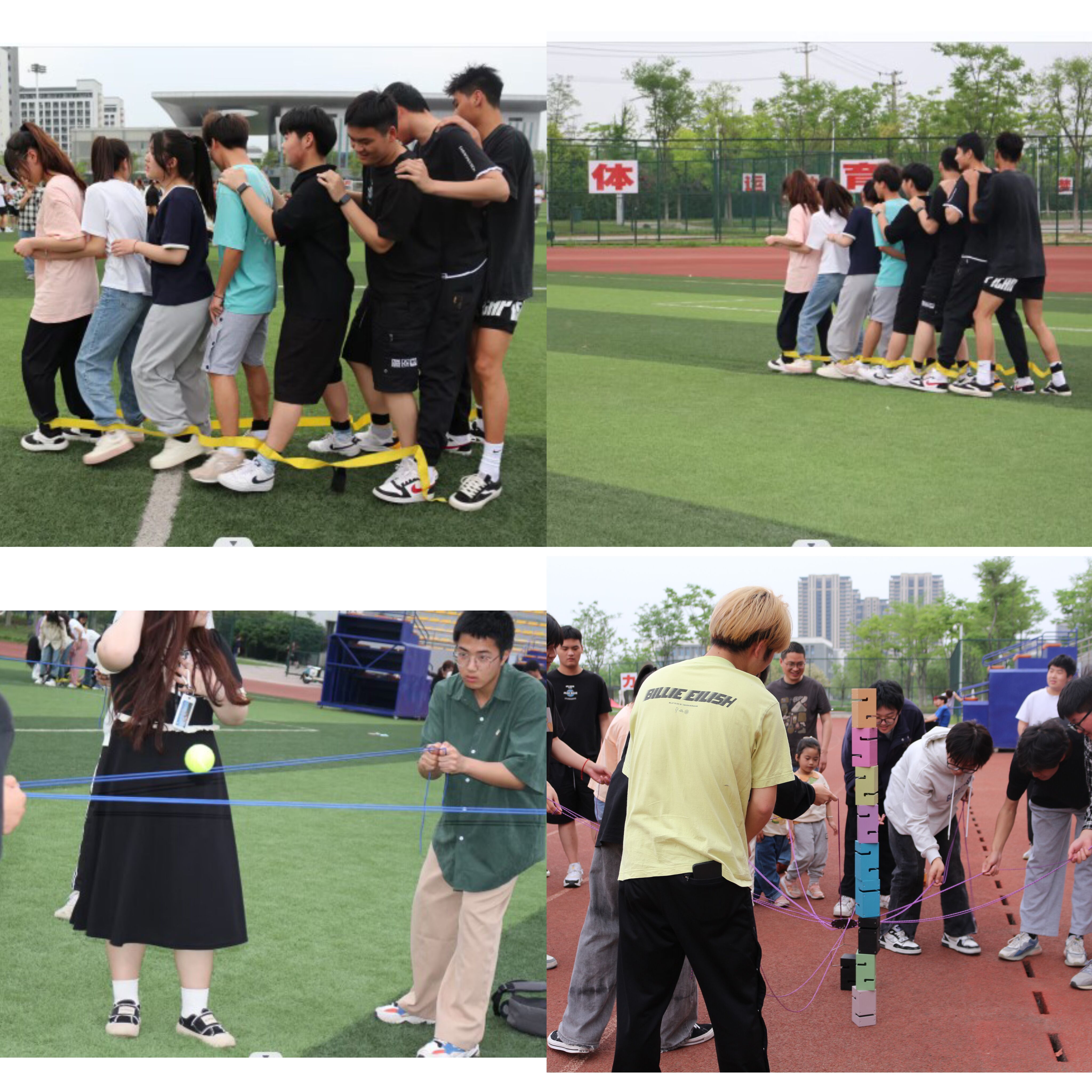 运动会现场气氛热烈,各班级参赛队员尽情释放着活力。在“珠行万里”和“轨道运球”中,同学们集中注意力,相互协商合作,不停试错,相互加油打气,最终达到目的地;在“巨人脚步”中,队员们相互配合,共同前进,在一声声整齐响亮的口号声中冲向终点;在“击鼓颠球”与“合力建塔”计时赛”中,同学们也在激烈的竞争中展现着团结协作的精神;在“趣味拔河”中,各参赛队伍通过队员之间的默契配合相互比拼淘汰对手;在“摸石过河”项目中,各参赛队员们小心谨慎又健步如飞……各个项目的趣味性让现场气氛热烈,同学们欢声笑语。