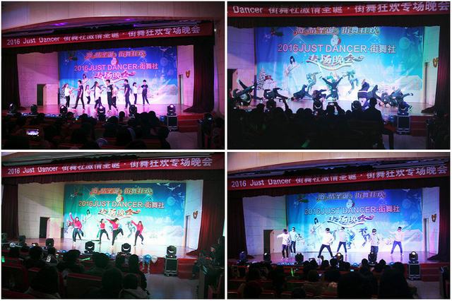 虽然当晚的温度较低,但是晚会的现场却热情似火。Locking、Breaking、Popping、Jazz、Hip hop等各类街舞都在舞台上得以展示。在JUSTDANCER街舞社带来的激情表演之后,由歌手协会表演的《告白气球》和巢穴小朋友表演的《少儿爵士》更令人击掌高呼,在这一场集视觉、听觉、感觉于一体的街舞盛宴下,观众们的热情一浪高过一浪。表演期间,主持人还进行了“歌曲问答”等互动环节,进行了现场的街舞教学,现场笑声不断。