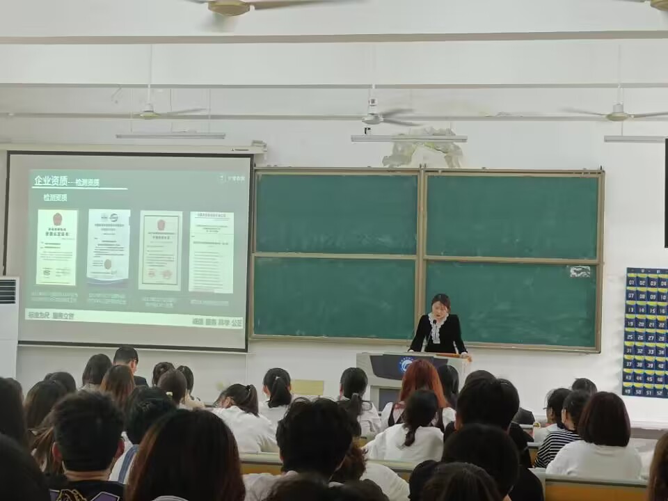 下午2点,实习单位与食品专业100余名学生齐聚教学楼A二阶梯教室,首先按照抽签方式,确定用人单位宣讲顺序,并安排老师耐心讲解注意事项和实习准则。随后开启专场招聘,随着实习单位负责人通过播放宣传片、PPT展示等方式向同学们介绍工作概况、企业文化、晋升空间、薪酬待遇等感兴趣的内容,台下也响起阵阵热烈的掌声。