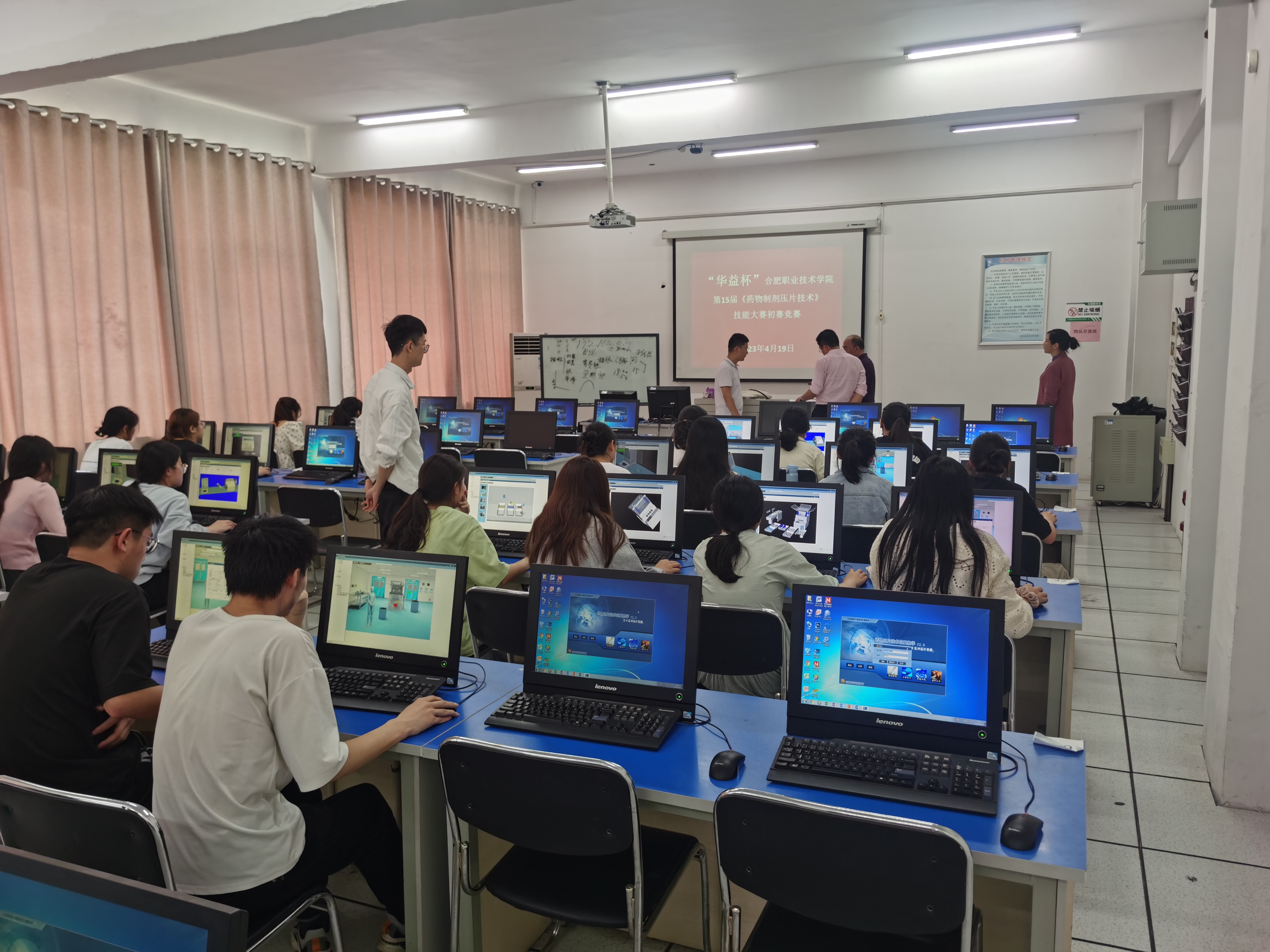本次比赛由华益药业林承斌、万山两位高工及药物制剂代课老师组成评委组进行考核并相互切磋专业技能;学生参赛达234人次,参与度达75%以上,覆盖了药学类所有专业。比赛现场争分夺秒、有条不紊、配合默契,展示大赛竞技风采。经过激烈的比赛,李旋旋、张梦蕊获团体一等奖;姜山、吴卫东;计鋆丽、姚伟瑛获团体二等奖;丁紫薇、王大雨;郭炎雨、武彤;宋琳、王胜男获团体三等奖。