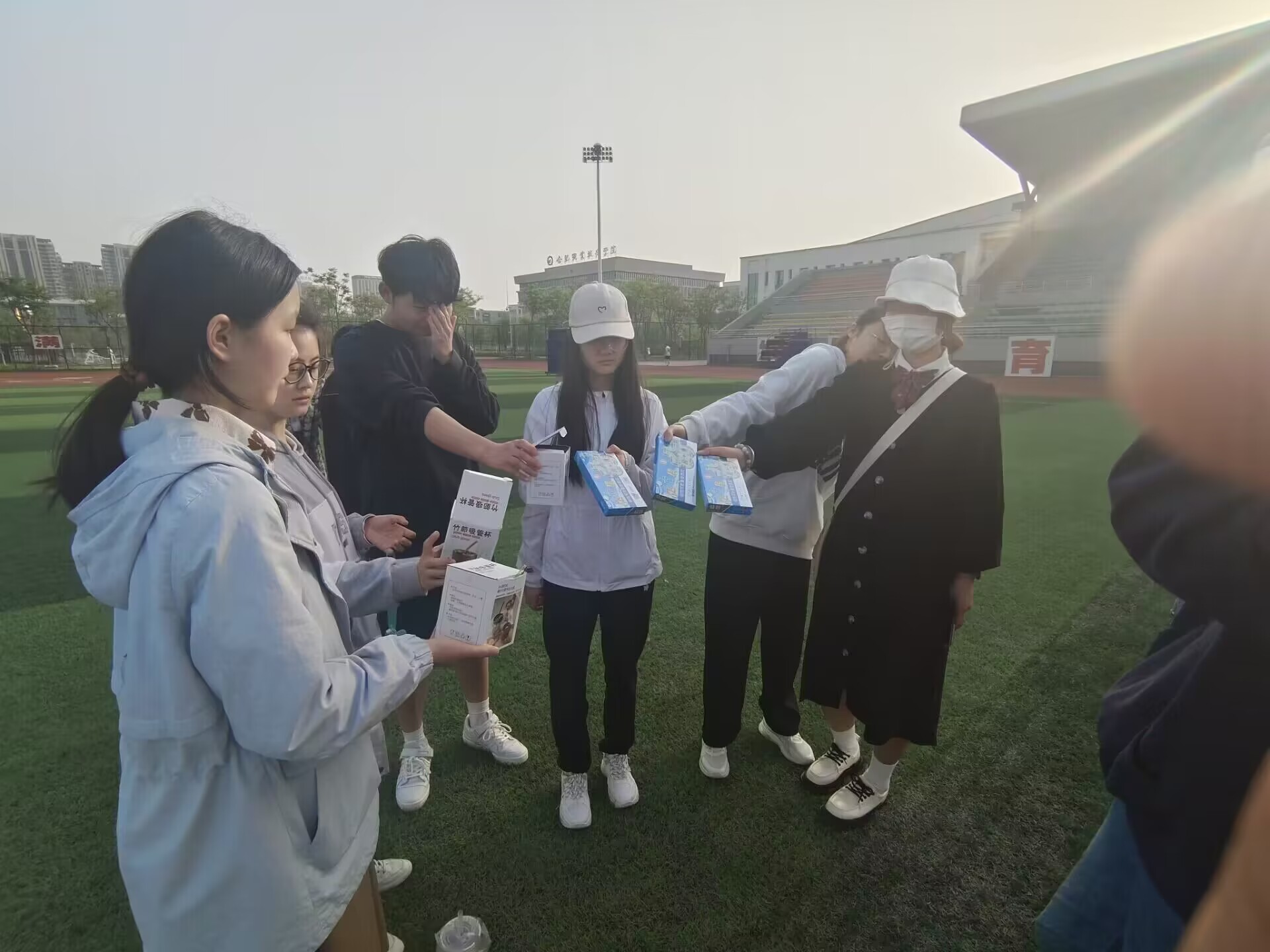 为充分实现本次活动的意义并增强游戏趣味性,“真人飞行棋”在原游戏的规则上增加了对则进错则退的答题格,以人为棋,既看个人本领也考验团队合作,共进行4场比赛,每场4组共16名成员,不同的地点都有设置了不同类型的题目,如党的二十大相关知识、环保知识、志愿知识等。比赛期间,参与同学都热情洋溢,各个队伍更是同心协力,每组组员都在赛前进行了充分商议,棋盘上各组你追我赶、胜负难料,有小组起初落后而又迎头反超,也有小组势头强劲却最终惜败......比赛现场加油助威声不停,欢声笑语不断,而在热火朝天的赛场中,与参赛者同样活跃的是志愿者的身影。无论是活动开始前认真展开的道具搬运、场地布置等准备工作,还是比赛时对参赛者们的规则提醒、鼓舞呐喊,亦或是对场地、道具的及时维护,都彰显了“奉献、友爱、互助、进步”的志愿者精神。志愿者们用辛勤劳动和无私奉献为本次“真人飞行棋”活动保驾护航,而其开展服务工作的尽心尽力也收获了参赛同学的认可和真诚感谢。
