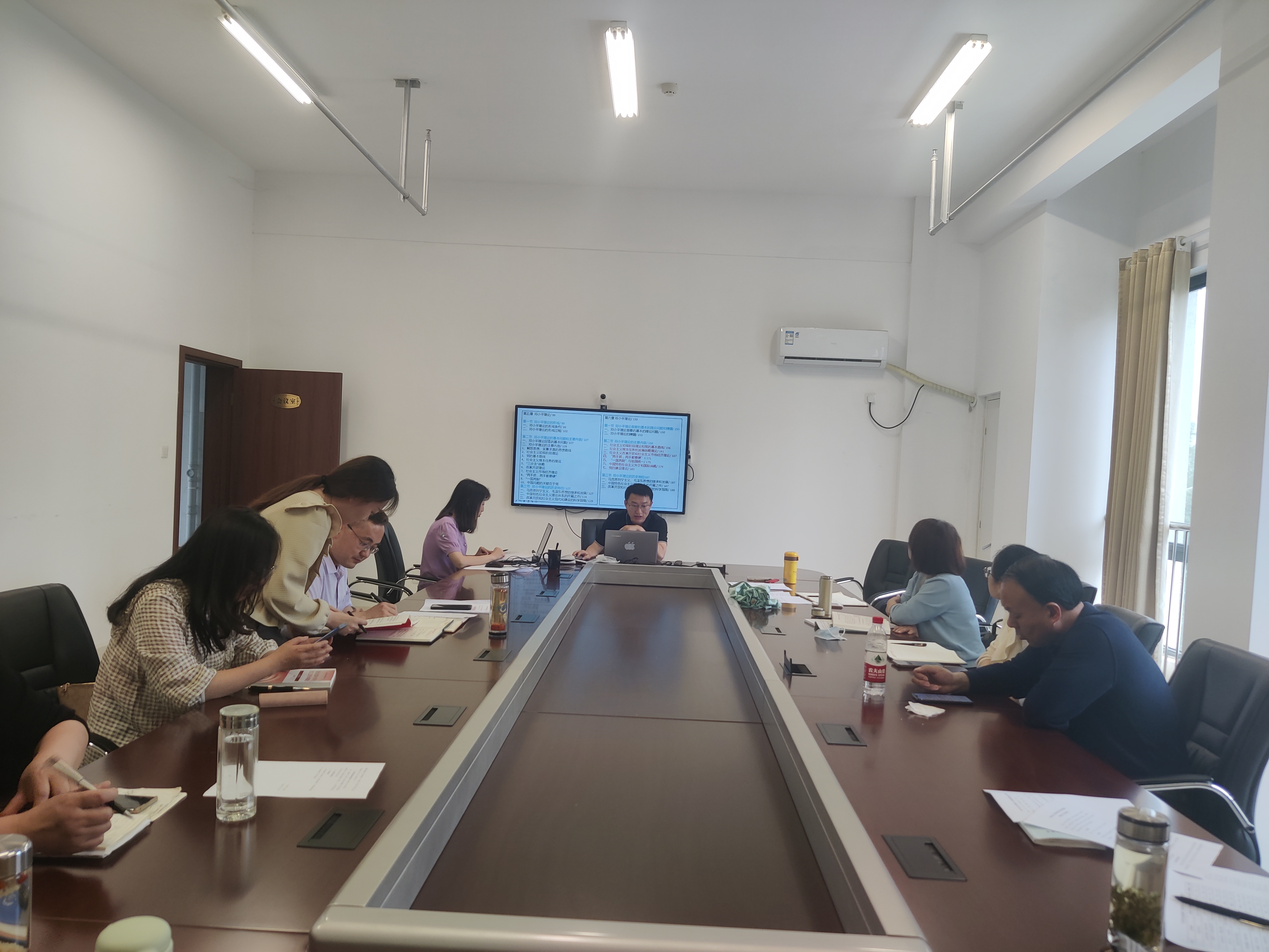 为深入学习贯彻习近平新时代中国特色社会主义思想主题教育精神,落实学校的“一改两为”要求,5月17日,马克思主义学院在汇心湖校区学院会议室组织开展了五月份“主题党日”活动暨第四次集体备课会,学院全体教职工参加了会议,会议由该院党支部书记王文飞主持。