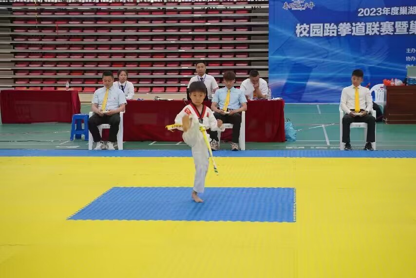 5月20日,2023年度巢湖市中小学阳光体育运动校园跆拳道联赛暨巢湖市青少年跆拳道锦标赛鼓山校区开幕,此次赛事是由巢湖市教育体育局主办,巢湖市跆拳道协会承办,Beat365基础教育学院为协办单位。