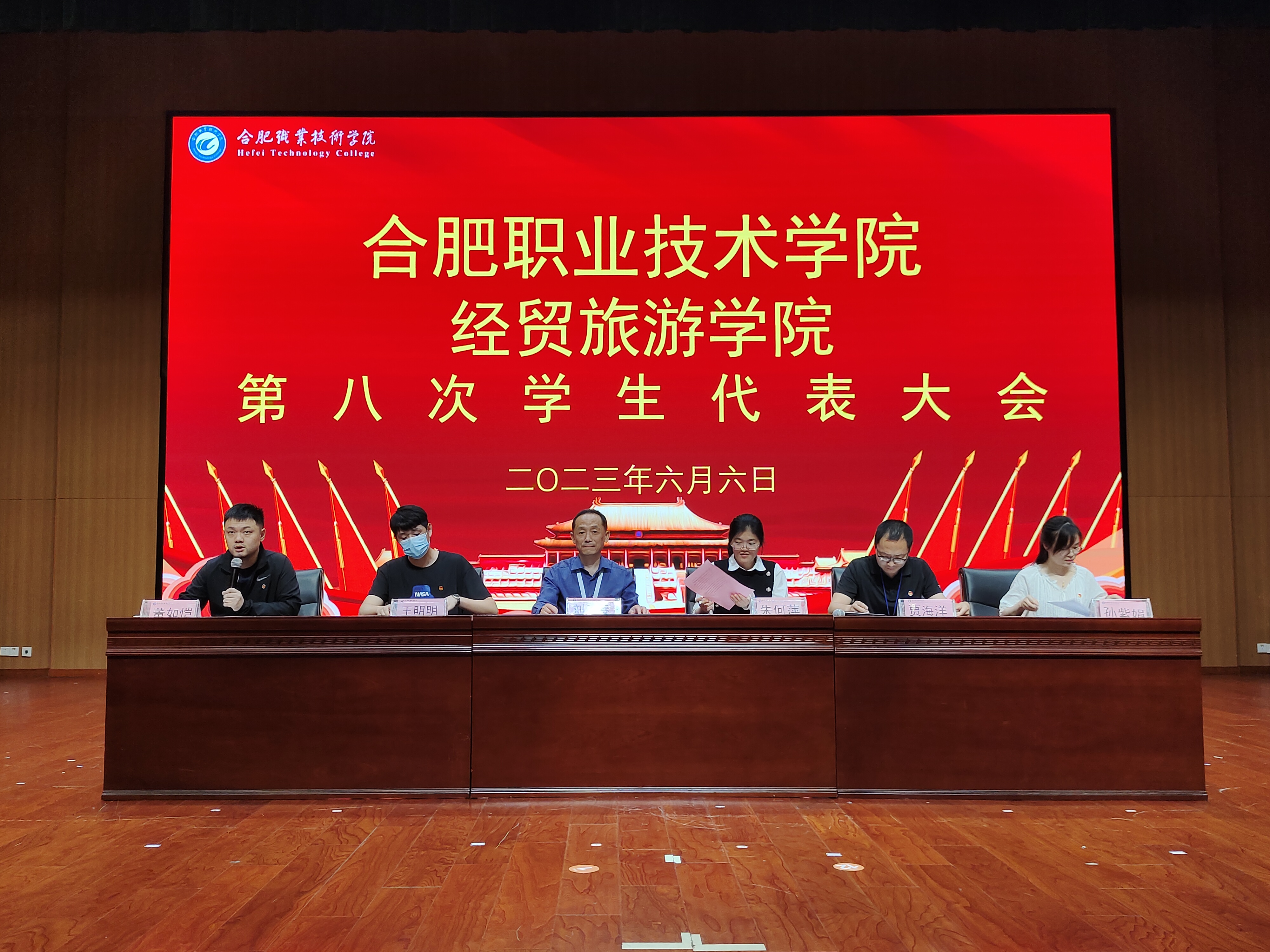 6月7日,经贸旅游学院第八次学生代表大会在汇心湖校区大学生活动中心二楼报告厅顺利召开。经贸旅游学院党总支副书记刘圣春、校团委组宣部部长朱何萍、学院团总支、学管办负责人和学生代表60多人参加了会议。