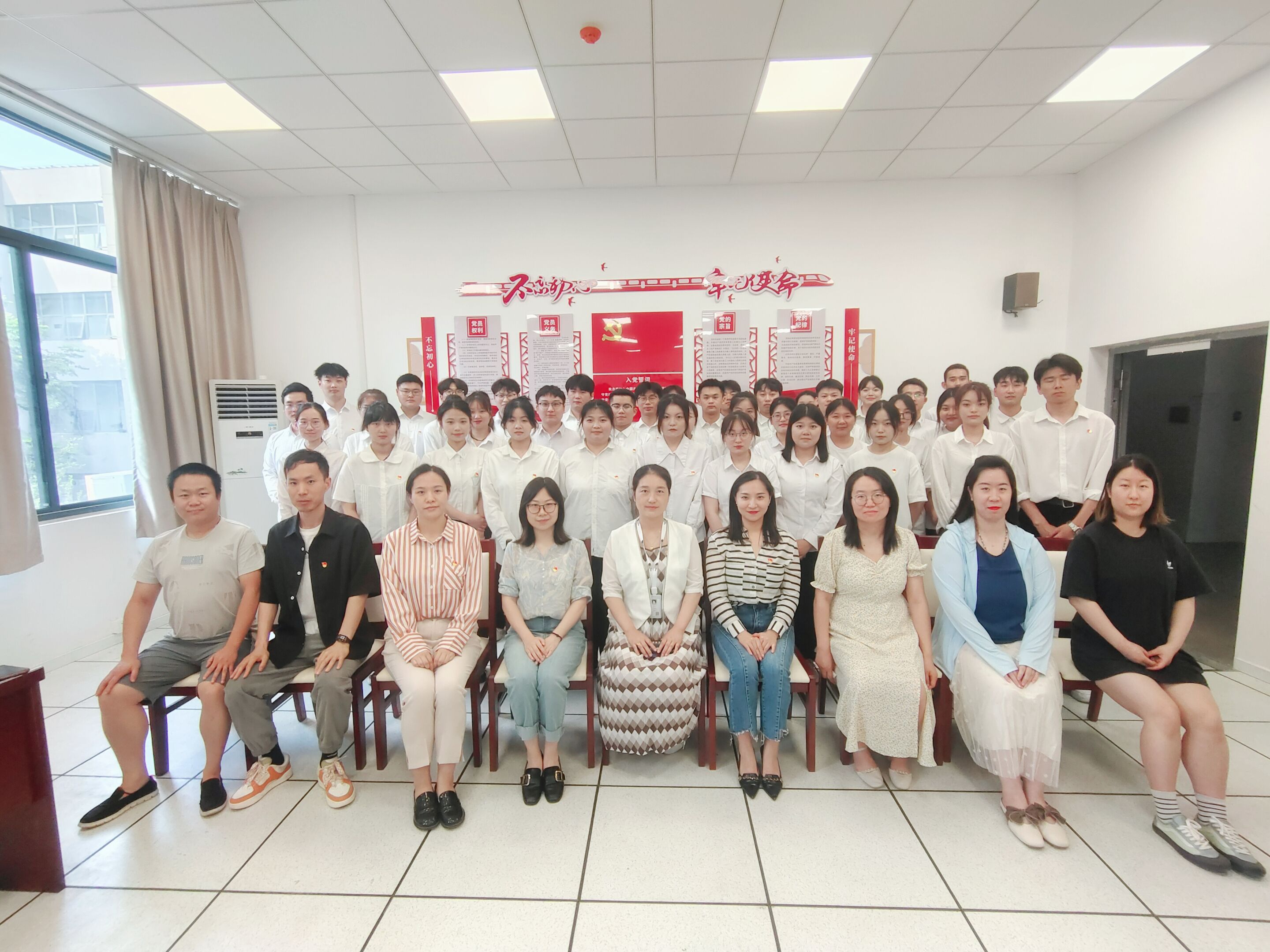 党总支书记佘海月向40名按期转正的同志表示热烈的祝贺并寄予殷切的希望和要求:一是要牢记入党初心,坚决拥护党的各项方针政策,走向新征程;二要脚踏实地,进而有为,行稳致远,继续求知;三要建功立业不负青春,坚定不移的朝着目标前进,勇毅前行。