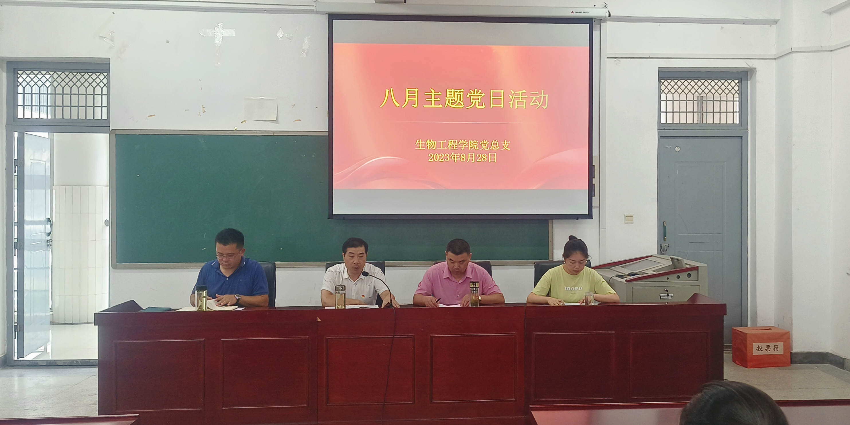 为扎实推进学习贯彻习近平新时代中国特色社会主义思想主题教育,深入学习宣传贯彻党的二十大精神,根据学校党委安排部署,结合工作实际,生物工程学院党总支于8月28日在生化楼A305组织开展8月份主题党日活动。会议由该院党总支副书记(主持工作)慈龙保主持,全体党员参加会议。