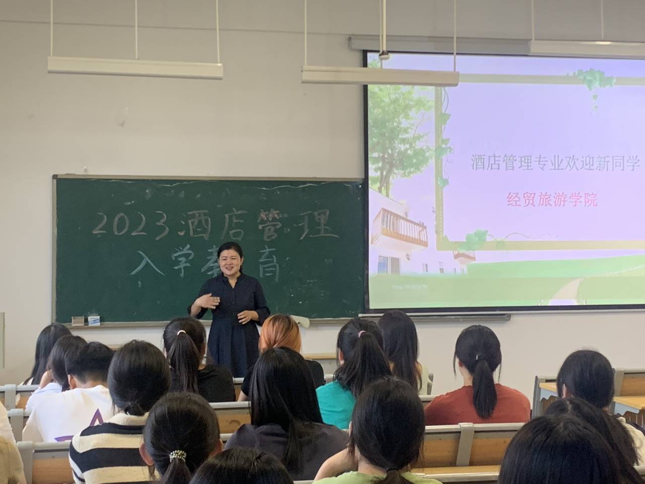 随着Beat3652023级新生报到工作结束,经贸旅游学院大数据与会计、会计信息管理、旅游管理、酒店管理与数字化运营、金融科技应用、电子商务六个专业共迎来512名新生。为了让新生同学们尽快适用大学学习和生活,了解所学专业及其发展前景,确立正确人生目标、培养高尚人格、走入人生新阶段,经贸旅游学院根据新生入学教育总体方案于9月12日上午统一组织举行“2023级新生专业思想教育”专题讲座。