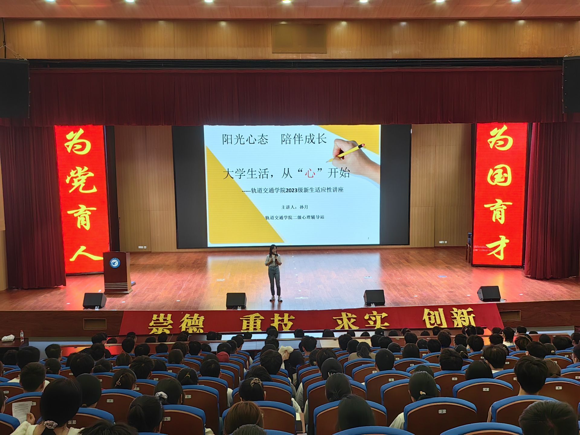 为引导新生尽快适应大学生活,实现新生角色转变,提高心理素质,强化心理健康认知,轨道交通学院于年9月10日举行2023级新生适应性心理健康讲座,轨道交通学院2023级全体新生参加了本次讲座。