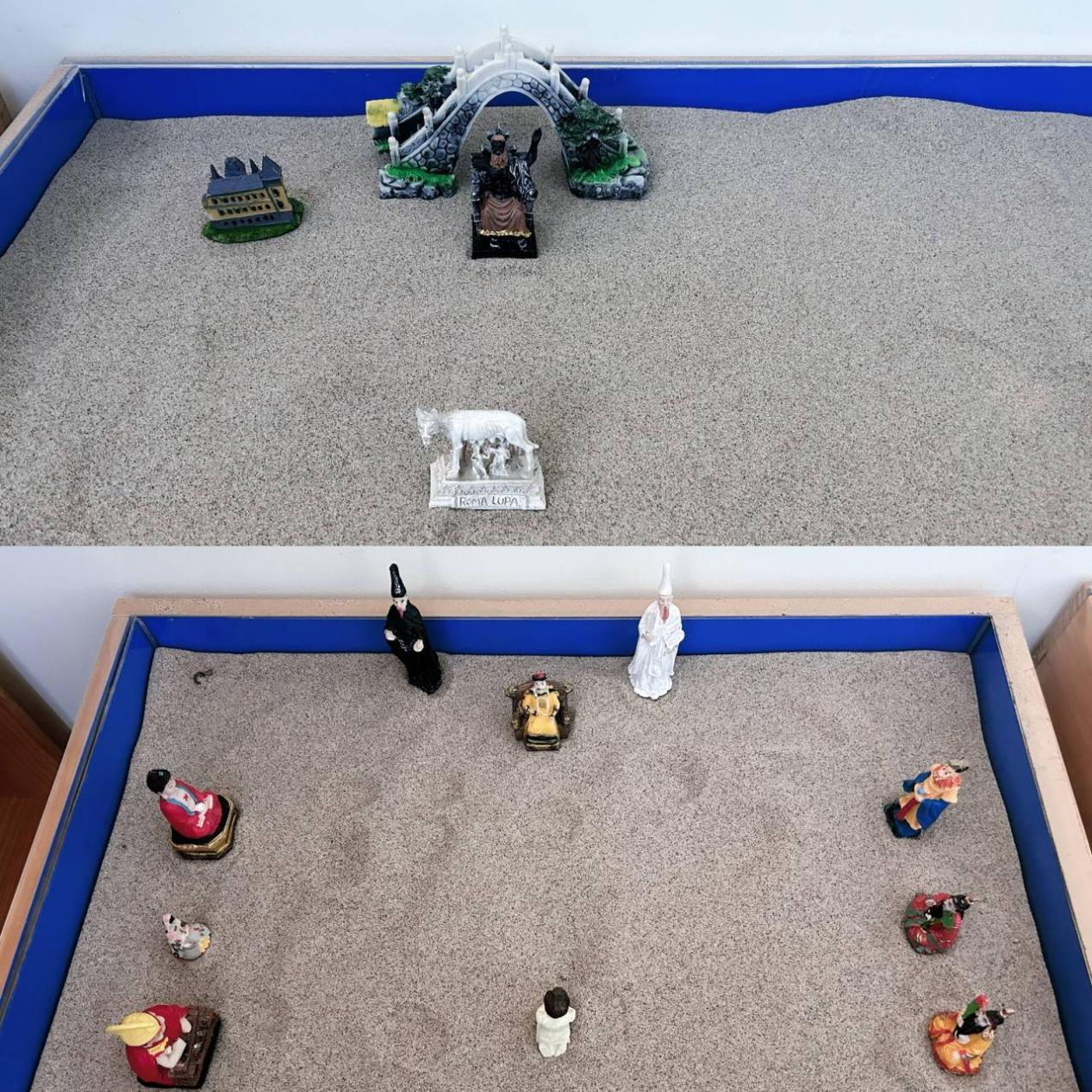 其次,沙盘游戏环节邀请同学们创作出自己心中的世界。同学们一边在沙盘“小世界”里摆放各式各样的沙具,一边讲述自己在创作过程中的独特感受,大家相互合作,完成了一幅幅令人难忘的沙盘作品。最后,心理 OH 卡测试采用一种特殊的卡片,通过图片牌和文字牌的不同组合,展开朋辈之间的对话,挖掘问题,进而完成自我探索。通过潜意识的呈现,让同学们找到内心深处的方向。