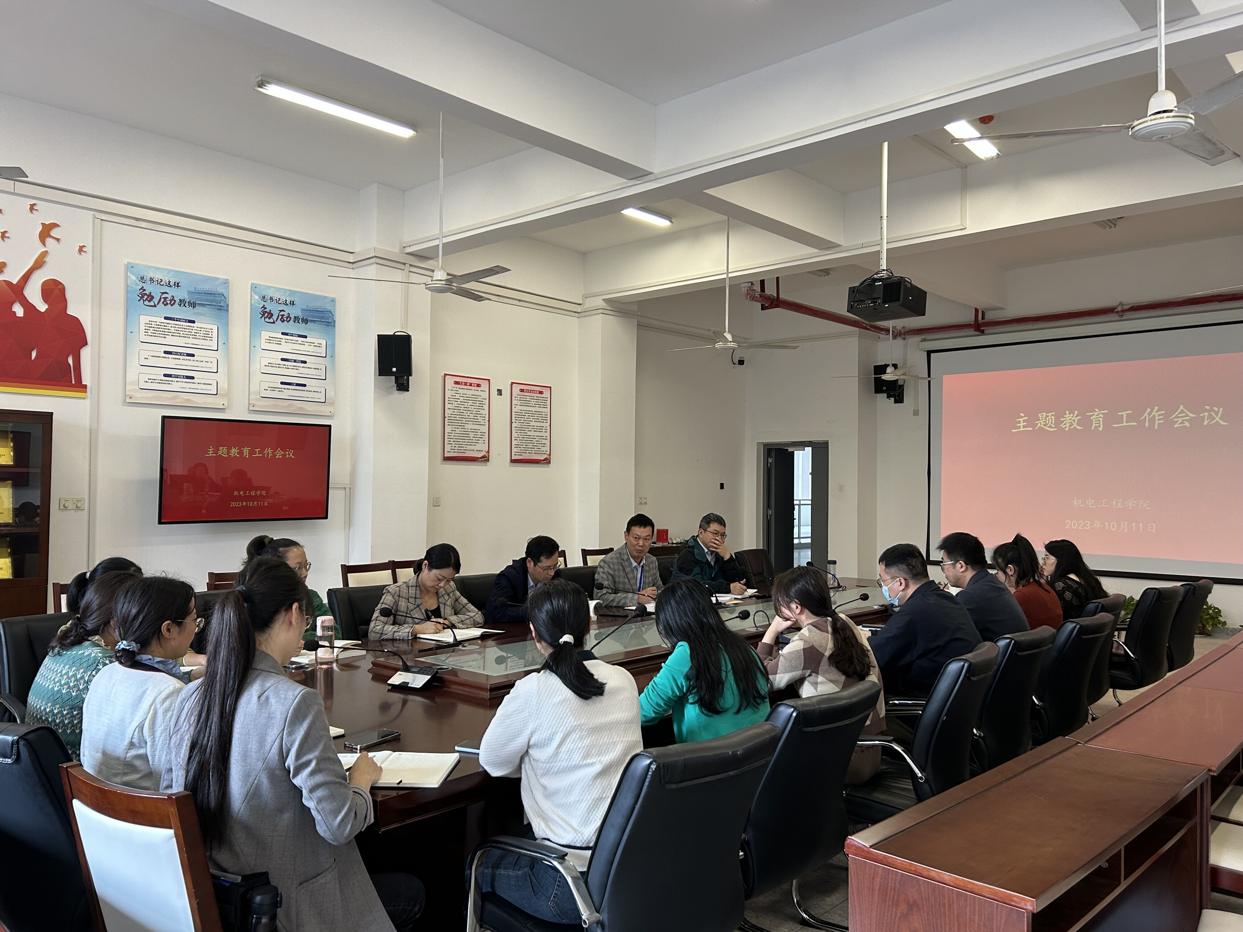 10月11日,机电工程学院在机电楼二楼会议室召开学习贯彻习近平新时代中国特色社会主义思想主题教育工作会议,深入学习贯彻习近平总书记关于主题教育系列重要讲话和重要指示批示精神,学院主题教育领导小组及各支部委员参加会议。会议由党总支副书记(主持工作)丁迎春主持。