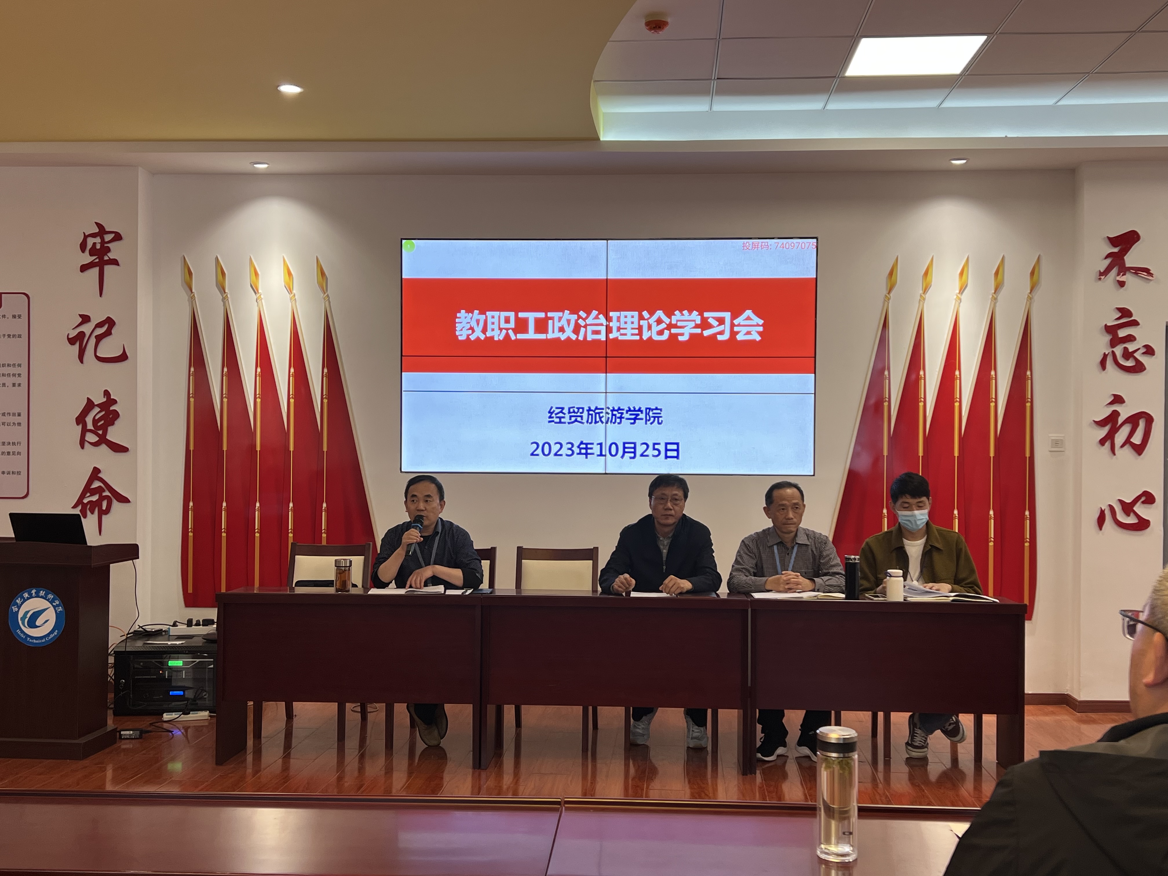 10月25日下午,经贸旅游学院在党性体验馆召开10月份政治理论学习会。学院党政和全体教职工参加会议,会议由副院长陈继林主持。