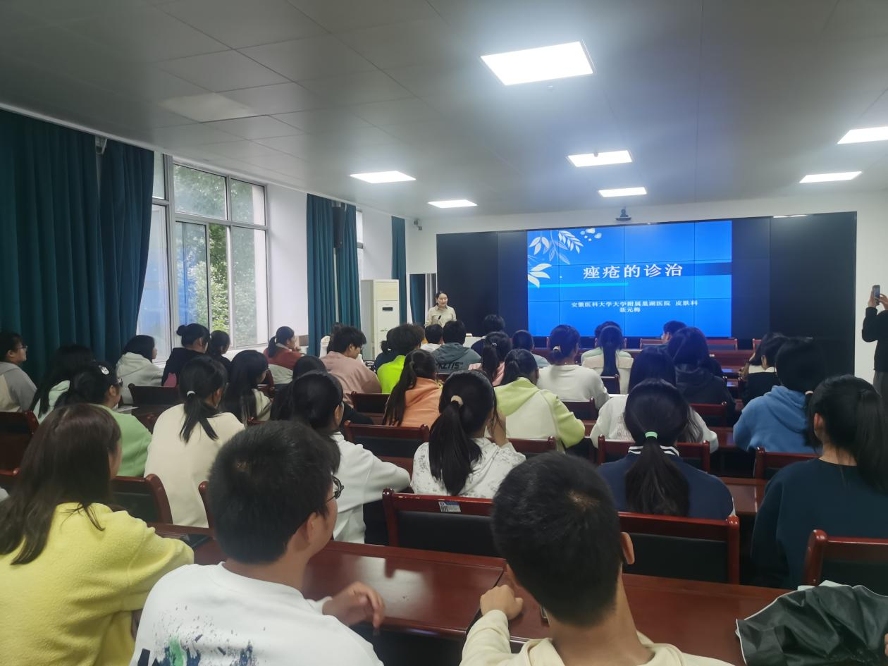 为推动党建与育人工作融合发展,促进支部之间相互学习、共同提高,安徽医科大学附属巢湖医院内科第十党支部与医学院第六党支部自建立结对共建关系以来,在支部建设与教育教学方面多次展开深入交流,10月25日下午,安徽医科大学附属巢湖医院内科第十党支部书记聂元梅来该院开展关于痤疮防治的知识讲座。讲座在医学楼二楼会议室进行,学院八十余名学生参加。