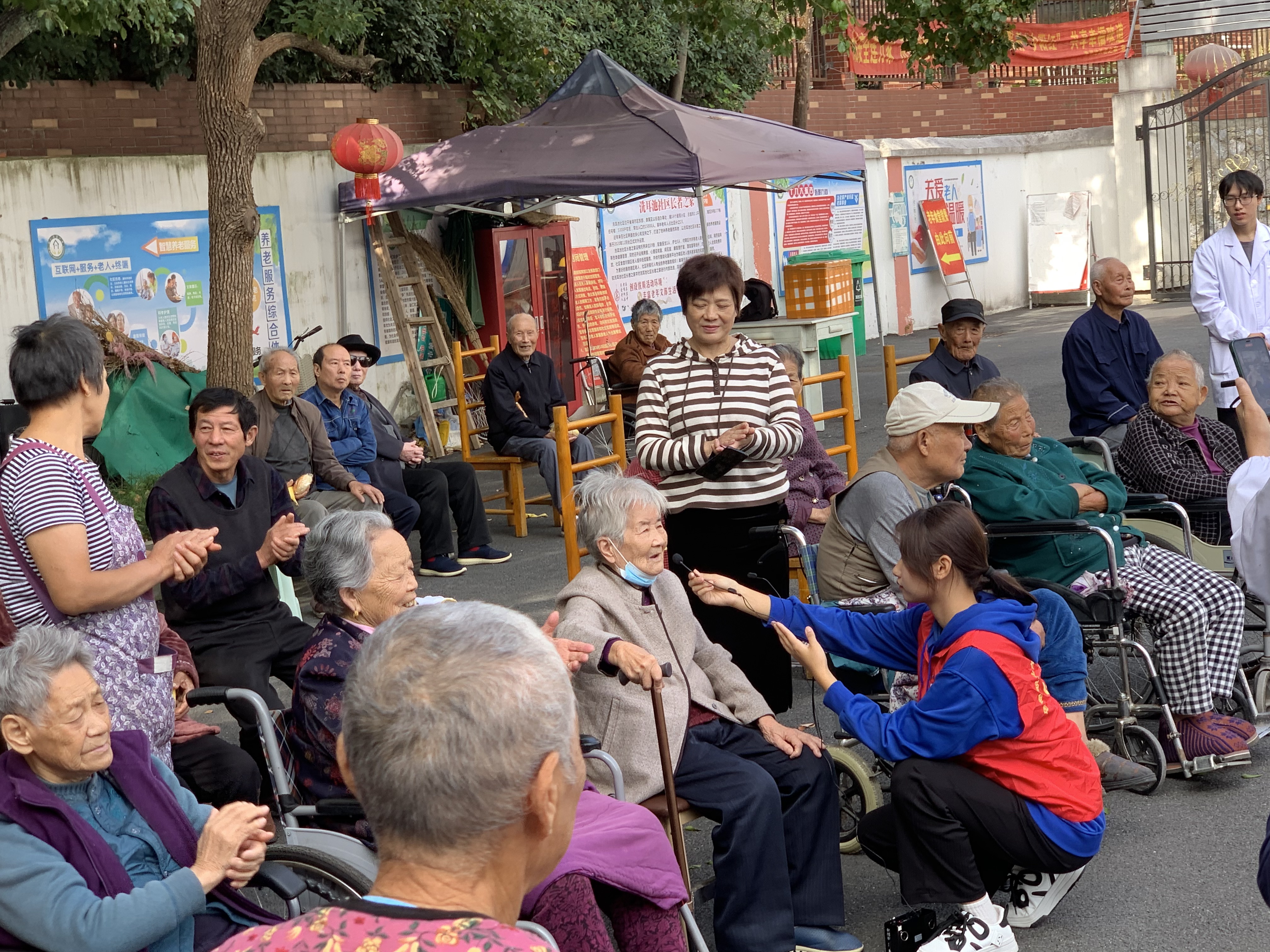 经过前期与长者之家负责人的沟通,志愿服务队根据长者们的健康状况和实际需求确定了活动方案。开展健康体检,为长者们测量血压,核对并记录长者们的血压情况,了解长者的身体状况,并针对性地开展健康宣教;娱乐互动,开展了丰富多彩的互动节目,做手指保健操、红歌串烧、舞蹈对对碰等;为长者送祝福和温暖,给长者分发了带来的面包和水果,对不能离床活动的长者给予关心、陪伴和简单的生活照料。