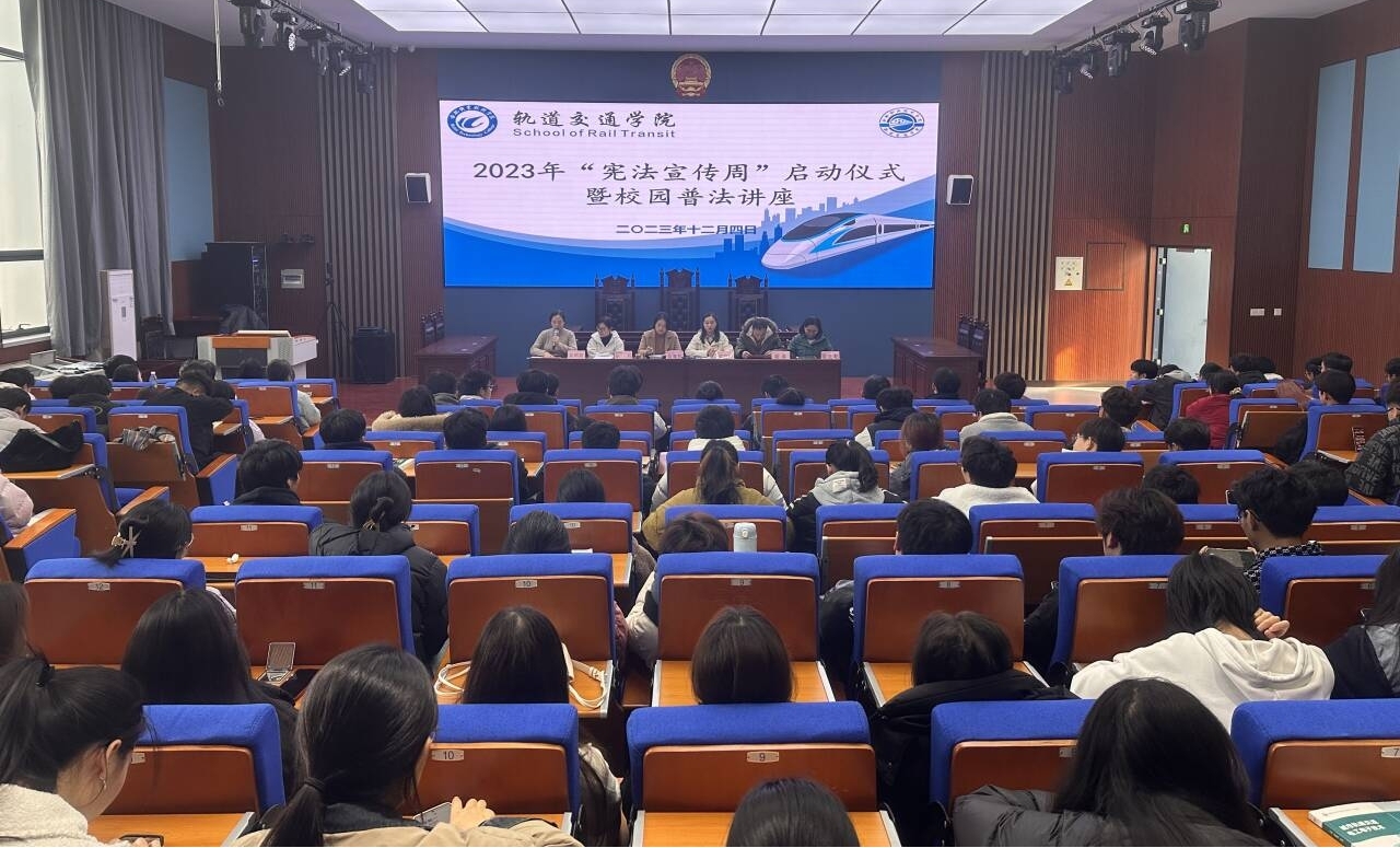 12月4日,正值第十个国家宪法日,12月1日至7日是第六个“宪法宣传周”。为深入学习贯彻党的二十大精神,全面贯彻落实习近平法治思想和习近平文化思想,进一步弘扬宪法精神,维护宪法权威,增强学生的法治意识和遵纪守法的自觉性,12月4日下午,轨道交通学院在学校模拟法庭举行“宪法宣传周”启动仪式暨校园普法讲座。轨道交通学院党总支书记佘海月,全体辅导员及23级学生参与会议。