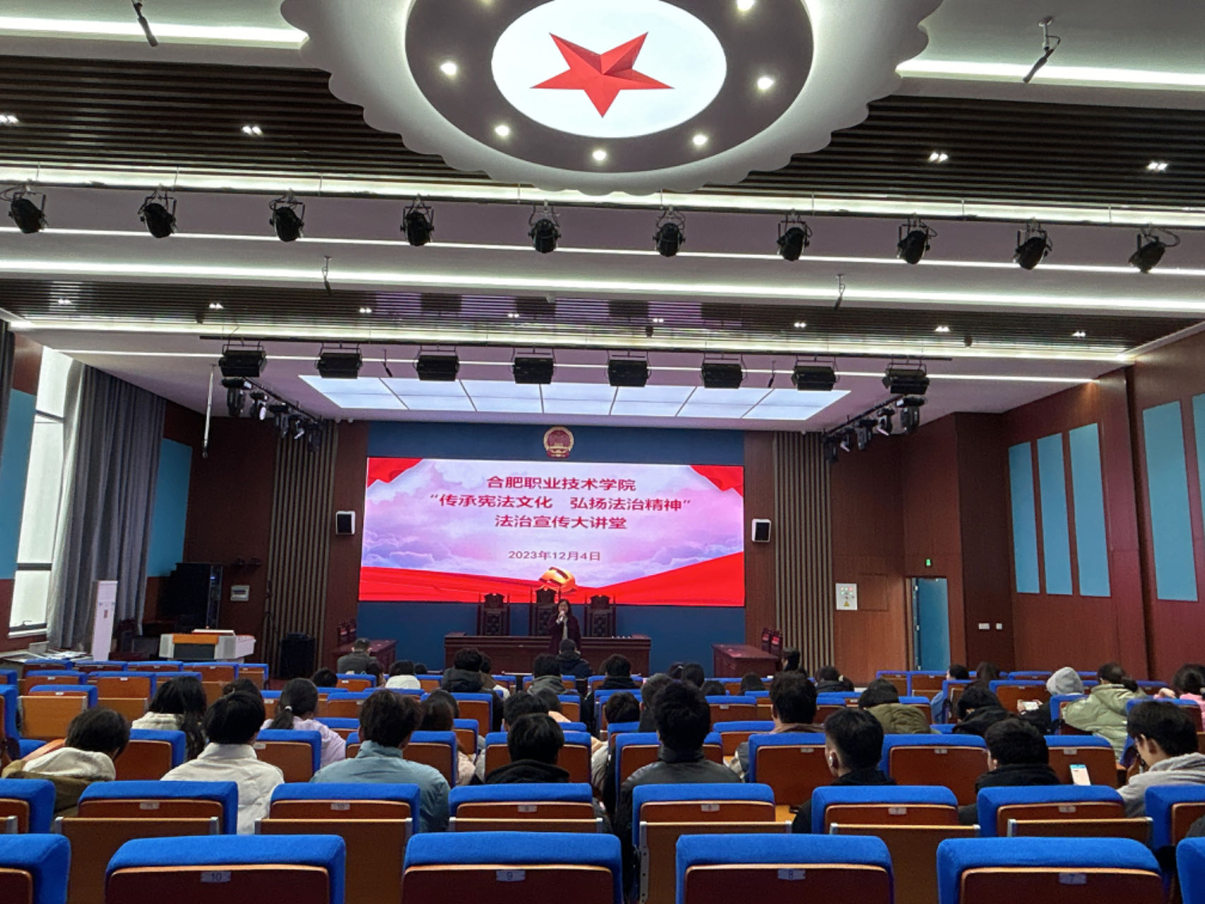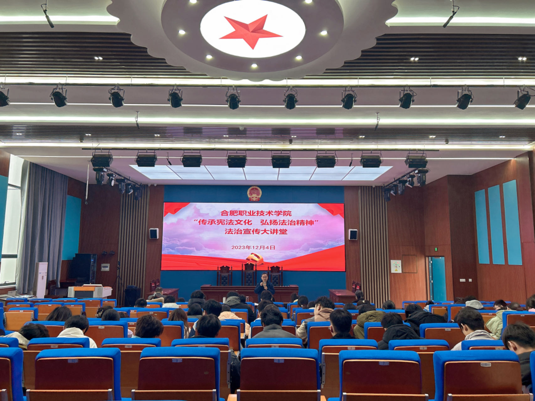 为深入学习贯彻习近平新时代中国特色社会主义思想,贯彻落实习近平法治思想和习近平总书记关于宪法法治教育的重要指示精神,推动习近平新时代中国特色社会主义思想进社团、进头脑,进一步加强“大思政课”建设,12月4日上午,马克思主义学院组织Beat365天平法学社和青年马克思主义学会成员在汇心湖校区模拟法庭开展了一场“传承宪法文化 弘扬法治精神”法制宣传大讲堂活动。
