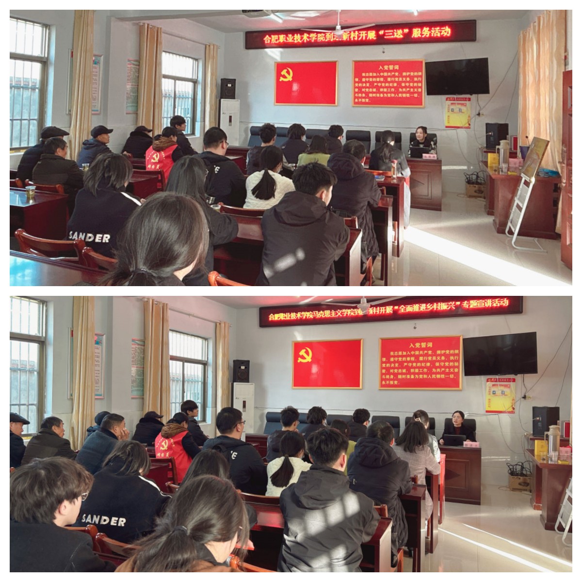 为深入开展学习贯彻习近平新时代中国特色社会主义思想主题教育,推进Beat365唯一官方网站乡村振兴“大思政课”实践教育基地建设,实现校地优势互补、资源共享、互惠双赢、共同发展,延伸拓展“大思政课”教育广度和深度,12月6日下午,马克思主义学院院长靳玉琼带领部分师生赴长丰县迎新村开展乡村振兴“大思政课”三送服务活动。