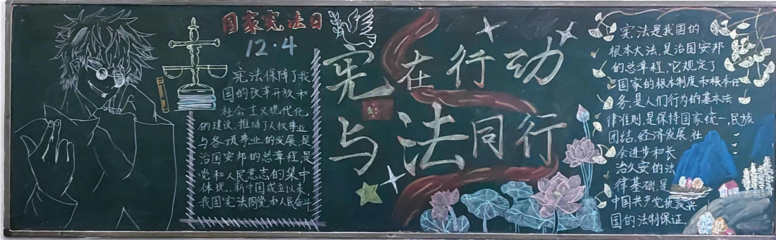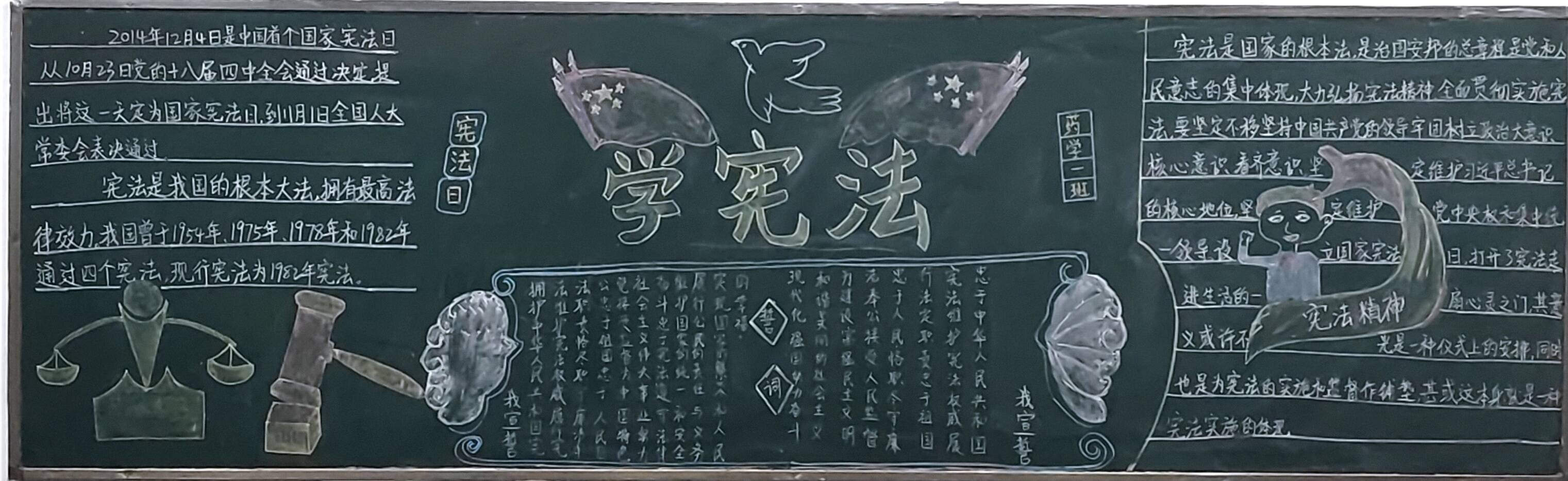 此次活动中,同学们都积极参与设计,板报内容积极向上,紧扣本次学习宣传宪法主题,板报上所展示的宪法,国旗,天平也有力地突出宪法公平公正的主题,彰显宪法权威。