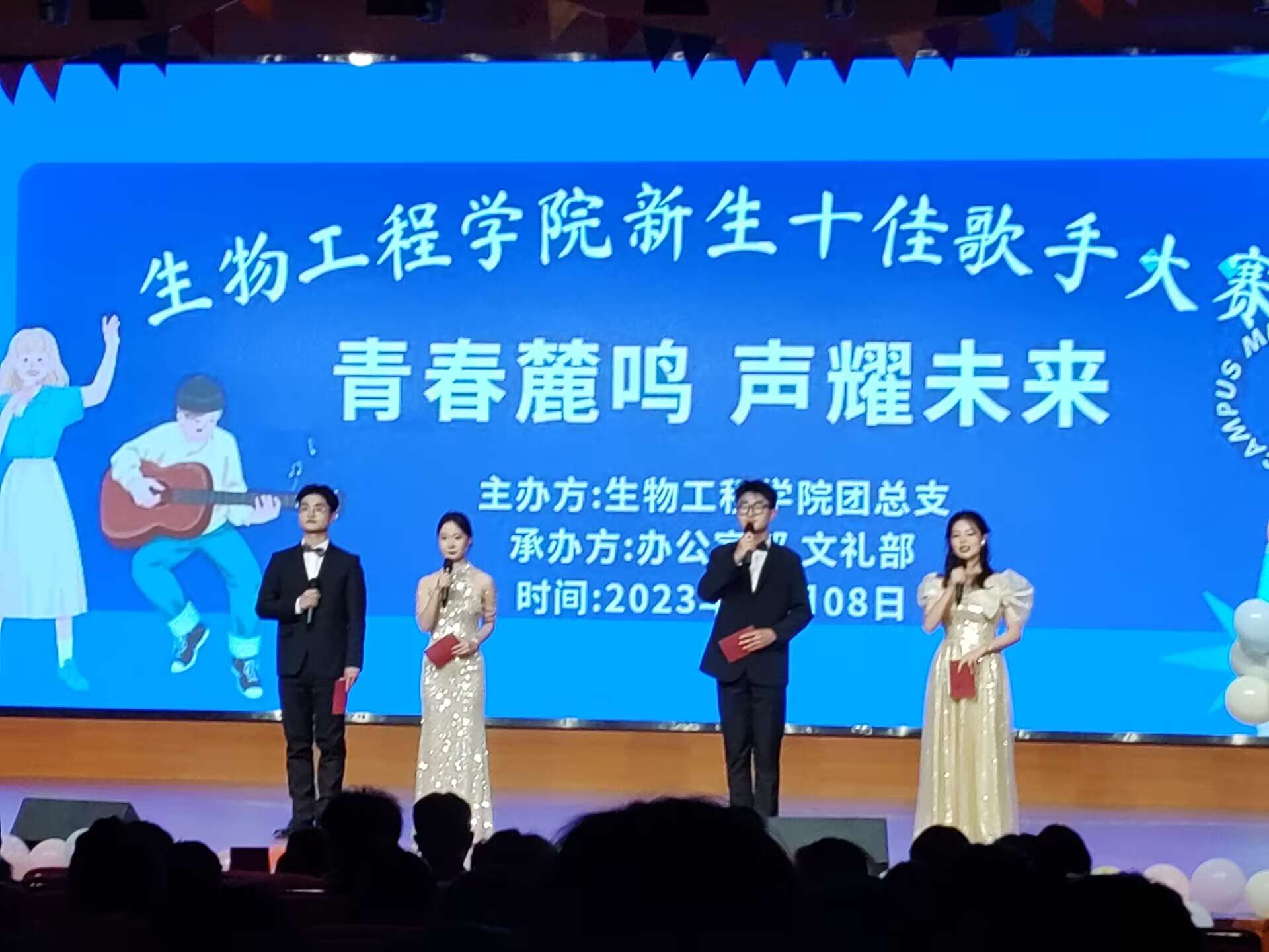 为丰富校园文化生活,提升同学们的综合素质,并为其提供一个展示自我才华的平台,12月8号下午,生物工程学院在大学生活动中心二楼举办新生十佳歌手大赛,生物工程学院党总支副书记(主持工作)慈龙保、副书记周婷、全体专职辅导员、校学生会及其他二级学院主席团出席比赛现场。