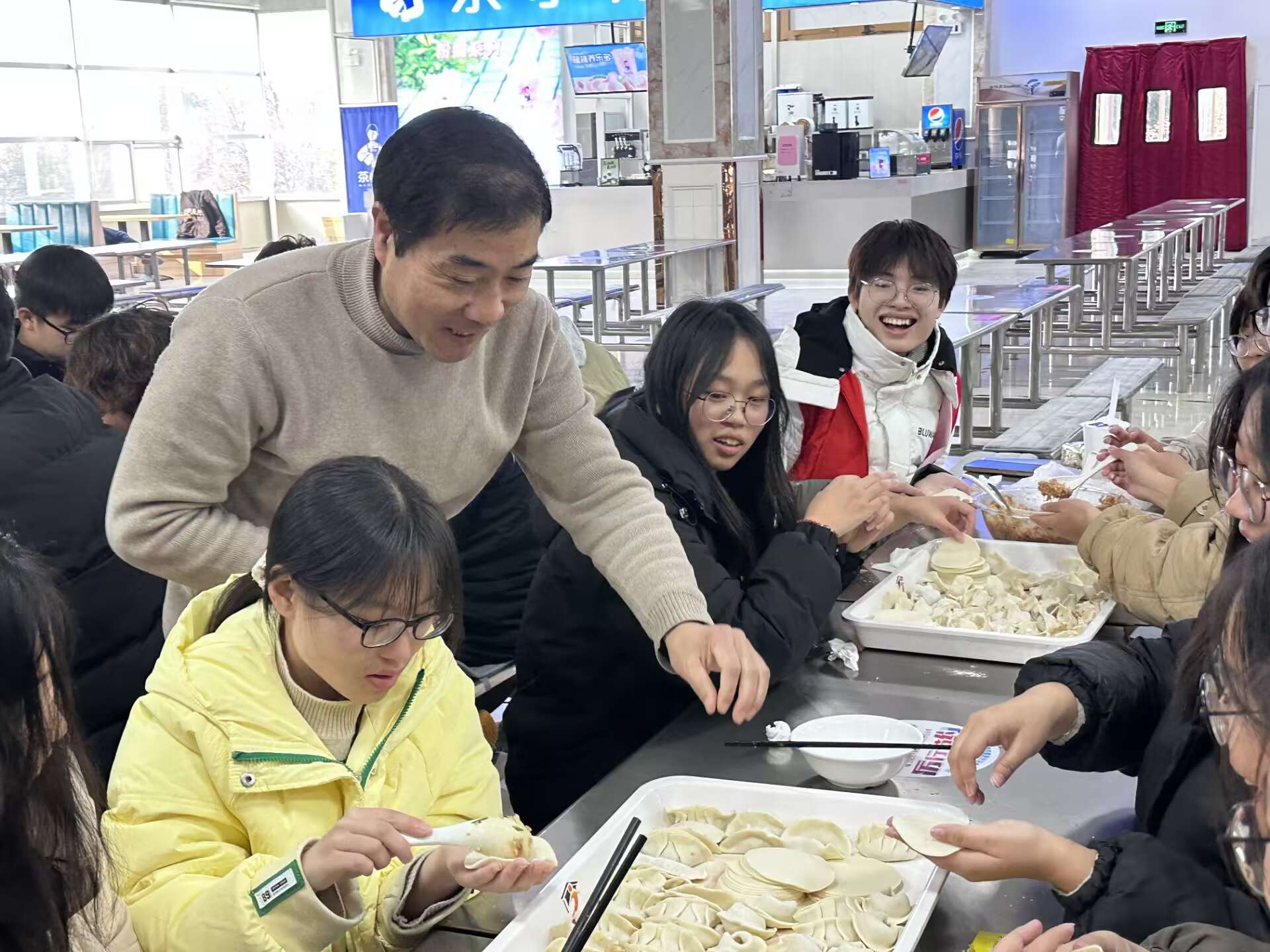 活动第一项师生共同参与包饺子比赛。比赛氛围非常热烈,同学们都非常投入在包饺子中,包出的饺子也是风采各异。包饺子比赛结束后进行了多项有趣的游戏。首先是"听歌识曲”游戏,同学们纷纷猜出歌曲的名字,有的同学非常擅长猜歌名,能够迅速准确地回答出歌曲的名称,赢得了掌声和喝彩。