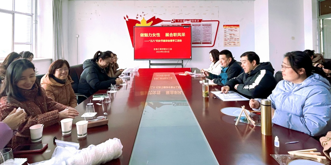 为提高女教职工的幸福感与归属感,激励广大女教职工在新学期新征程中继续发挥“半边天”作用,3月6日下午,生物工程学院开展了主题为“做魅力女性 展合职风采”的“三八”妇女节系列活动。本次活动由该院分工会主席周婷主持,全体女教职工全体参与,党总支副书记(主持工作)慈龙保、院长刘修树出席了此次活动。