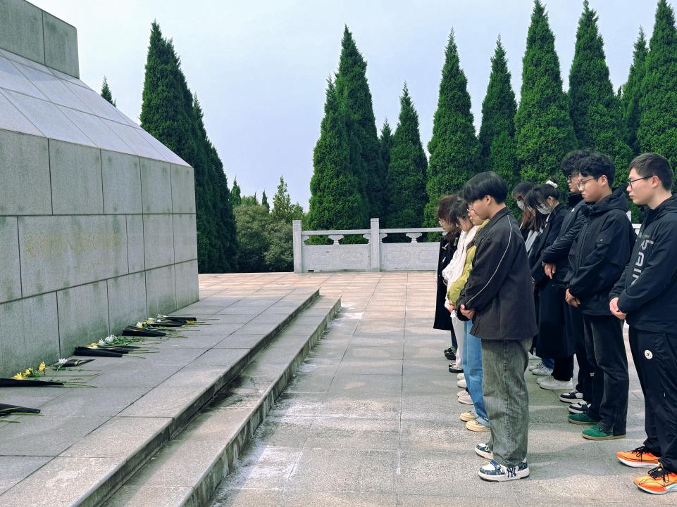 3月28日下午,生物工程学院组织入党积极分子和青年代表前往巢湖南山烈士陵园,举行清明节向烈士献花仪式。