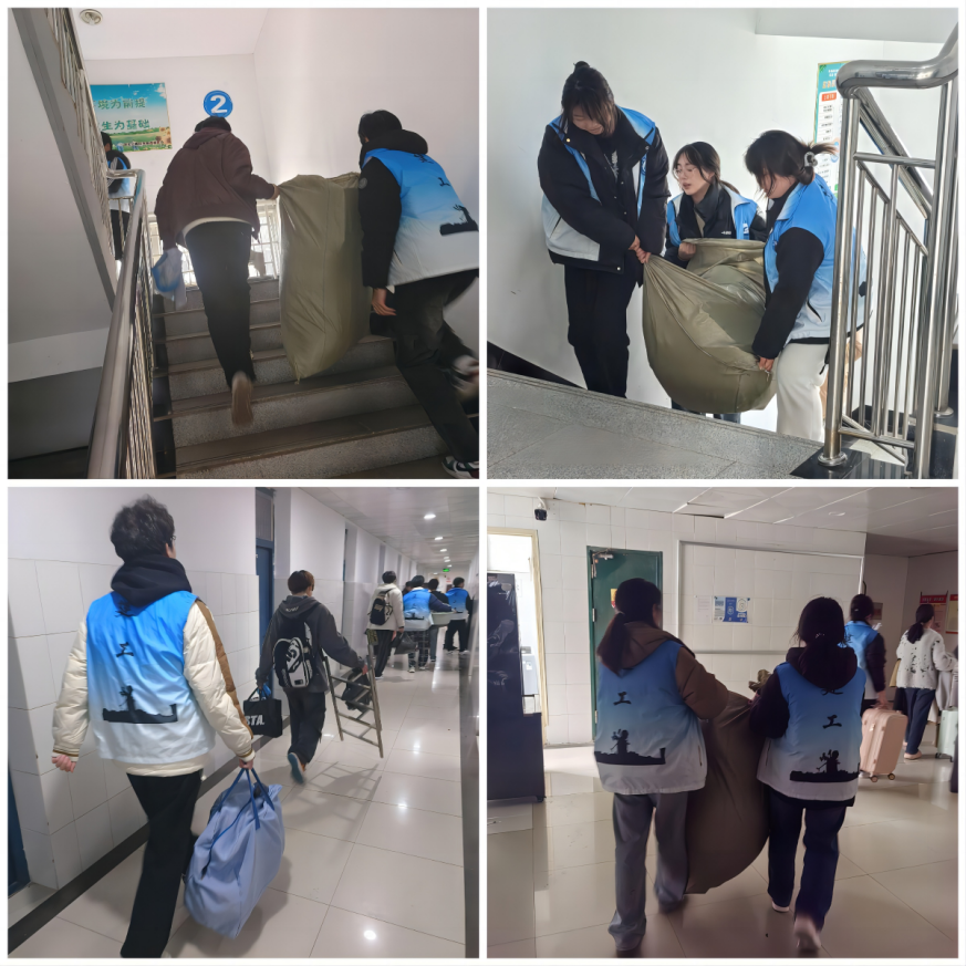 “合力搬迁显真情 志愿服务暖人心”志愿服务活动。因安全工作需要,该院部分宿舍需要搬迁,为确保宿舍搬迁活动安全有序、文明高效开展,该院五十余位志愿者们帮助同学搬迁宿舍。身着“蓝马甲”的志愿者们穿梭在宿舍楼层中,协助同学们将物品运至新宿舍。他们听从安排,积极行动,友好协助,发挥着青年的志愿精神。额头的汗珠、匆忙的脚步和勒红的手掌证明了志愿者们的勤劳和努力,楼道里响起的一声声“谢谢,辛苦了”表达了同学们对他们诚挚的谢意。在志愿者们热情高效的行动下,同学们井然有序地入住了新宿舍。