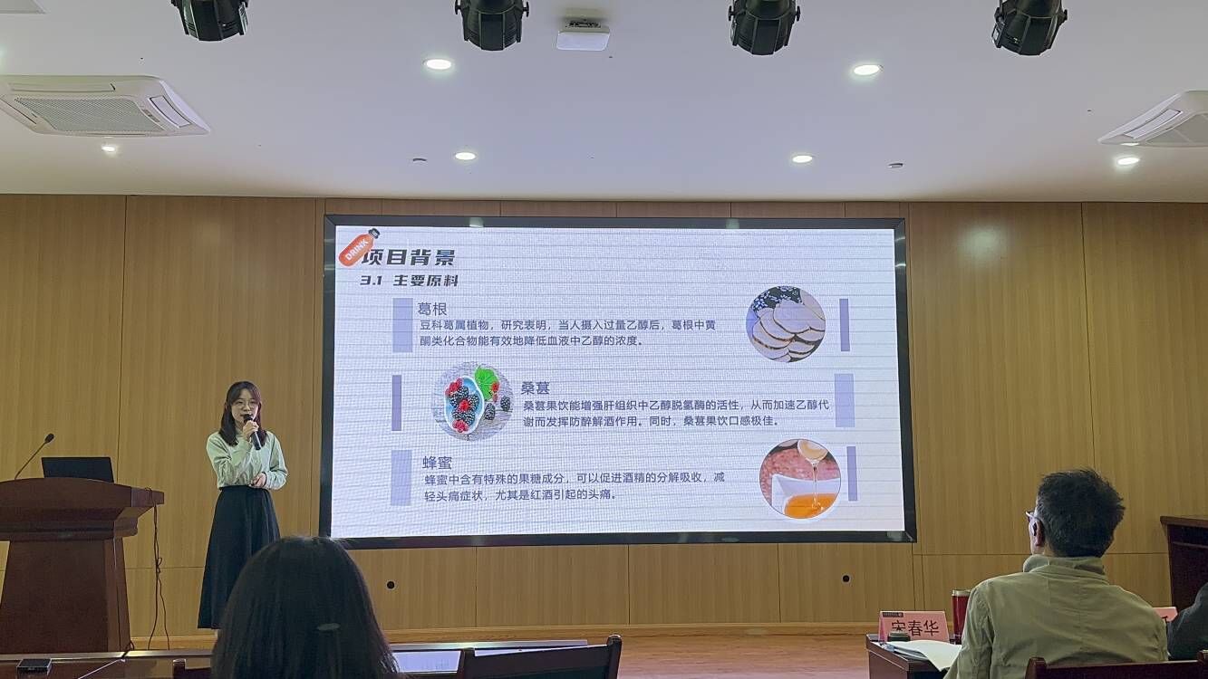 每个项目展示完成后,评委老师根据各团队创业计划书的可行性、资金分配、竞争优势、公司战略等方面进行提问,由团队成员进行精彩的3分钟的解答。经过两个半小时的激烈角逐,最终,生物工程学院的《“莓”你不行——石榴中提取的草莓保鲜剂》项目以出色的表现荣获铜奖,《酒美乐——新型复合型解酒饮料》获得优秀奖。