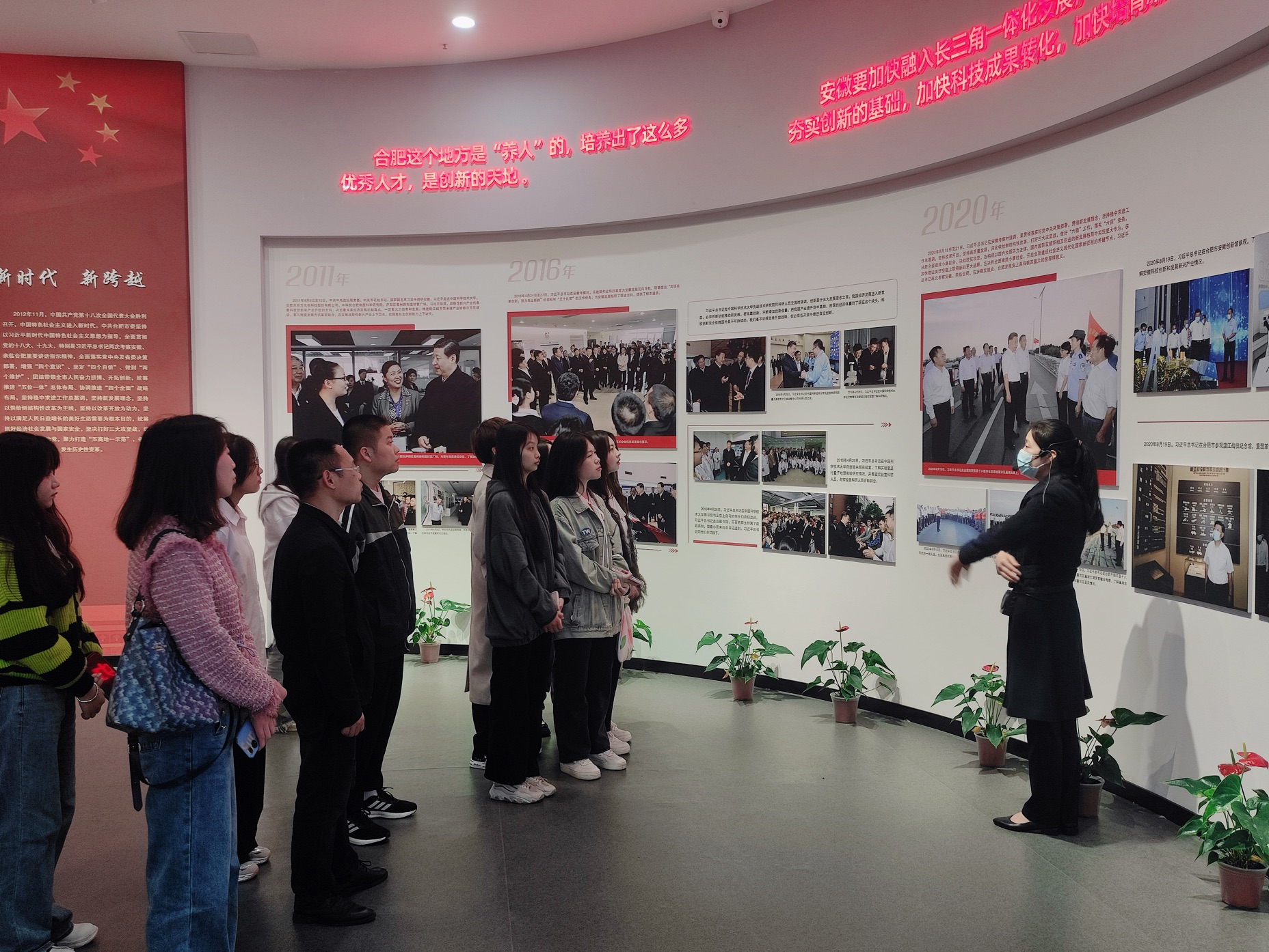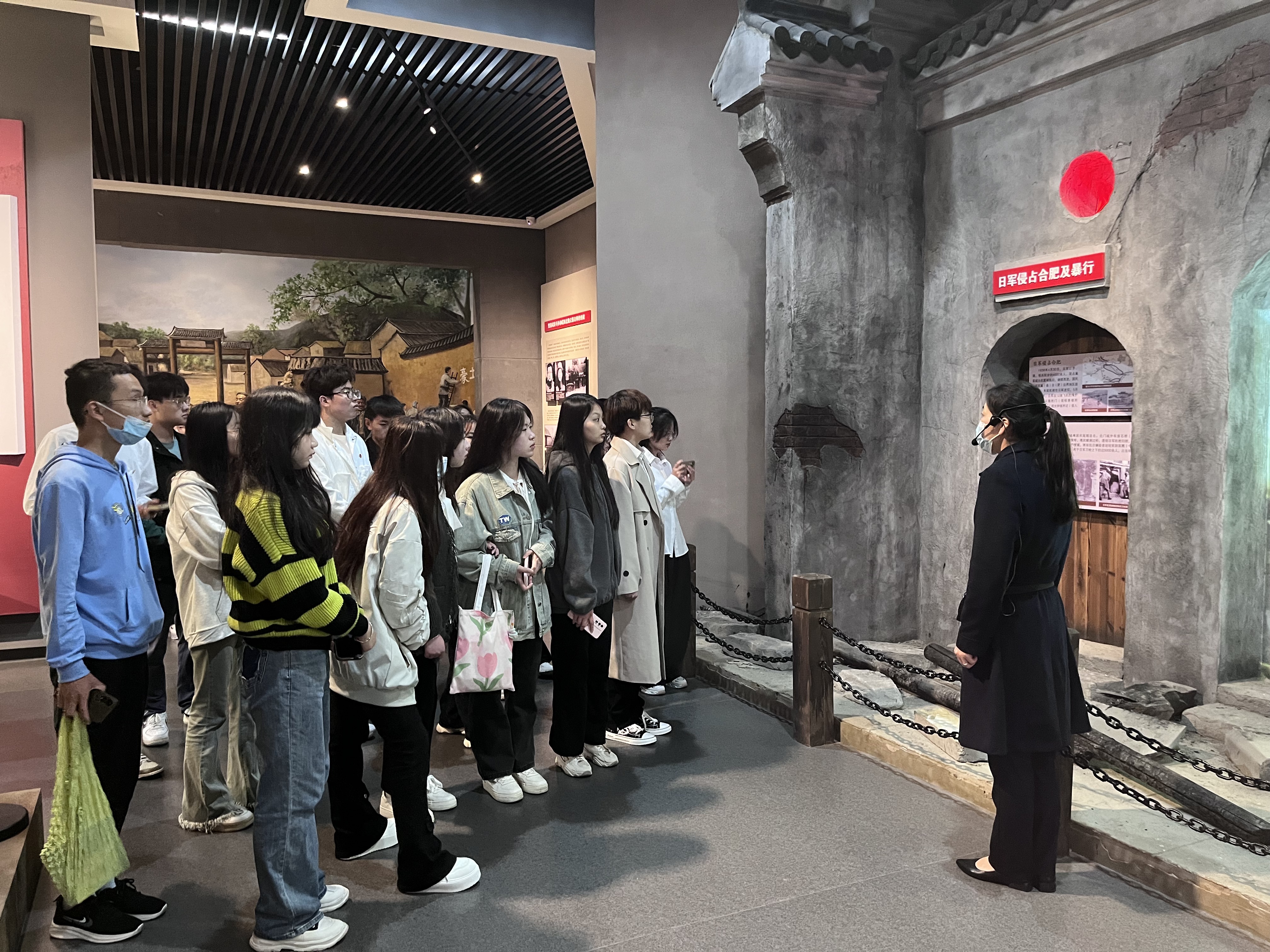 合肥党史馆地处肥东县白龙镇,这里曾是新四军四支队司令部驻地、中共合肥中心县委所在地、皖中地区抗日指挥中心,被誉为“江北小延安”。合肥党史馆分主馆——中国共产党合肥历史馆 ;副馆——新四军第四支队东进抗日纪念馆A、B馆。在展陈内容上,以革命新思潮在合肥传播为引领,用809块展板、近1000张图片、885件文物,展示了崔筱斋、蔡晓舟、童汉章、马毛姐等近110位重要人物。同时用34个场景雕塑、影音互动等呈现了北乡支部创建、双河集农民暴动、合肥解放等重大事件。通过讲解员的生动描述,同学们透过一张张图片、一件件实物、一尊尊雕塑、一部部影音片,深入了解了蔡晓舟、马毛姐等重要人物和北乡支部创建、合肥解放等重大事件,重温了百年党史中合肥人民在党的领导下创造的不朽功勋和光辉业绩。