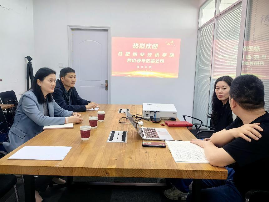 在合肥桃花集团科技有限公司,双方就学生创业孵化计划、校企深度联动机制、学校与孵化器企业间的项目合作以及技术服务等方面进行了深入讨论,表达了双方进一步深化合作的愿景。