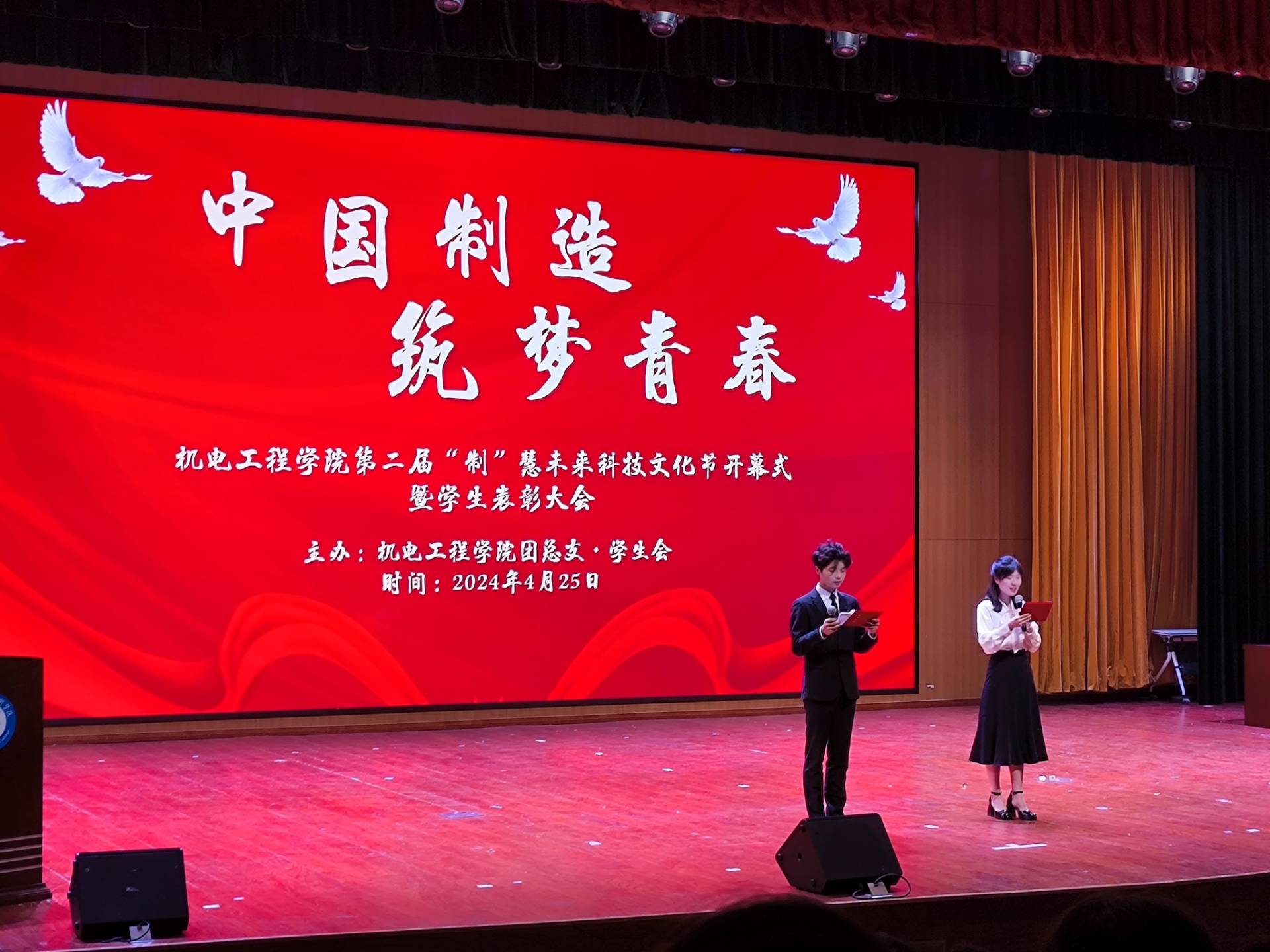 为营造良好的校园文化氛围,提升学生科创竞赛水平和实践创新能力,充分展示学子的青春风采,4月25日,机电工程学院第二届“制”慧未来科技文化节开幕式暨学生表彰大会在大学生活动中心二楼报告厅顺利举办。机电工程学院党政负责人及相关老师参加此次活动。
