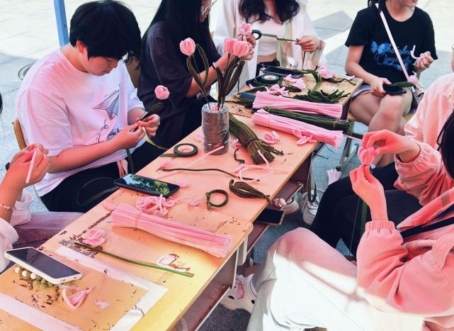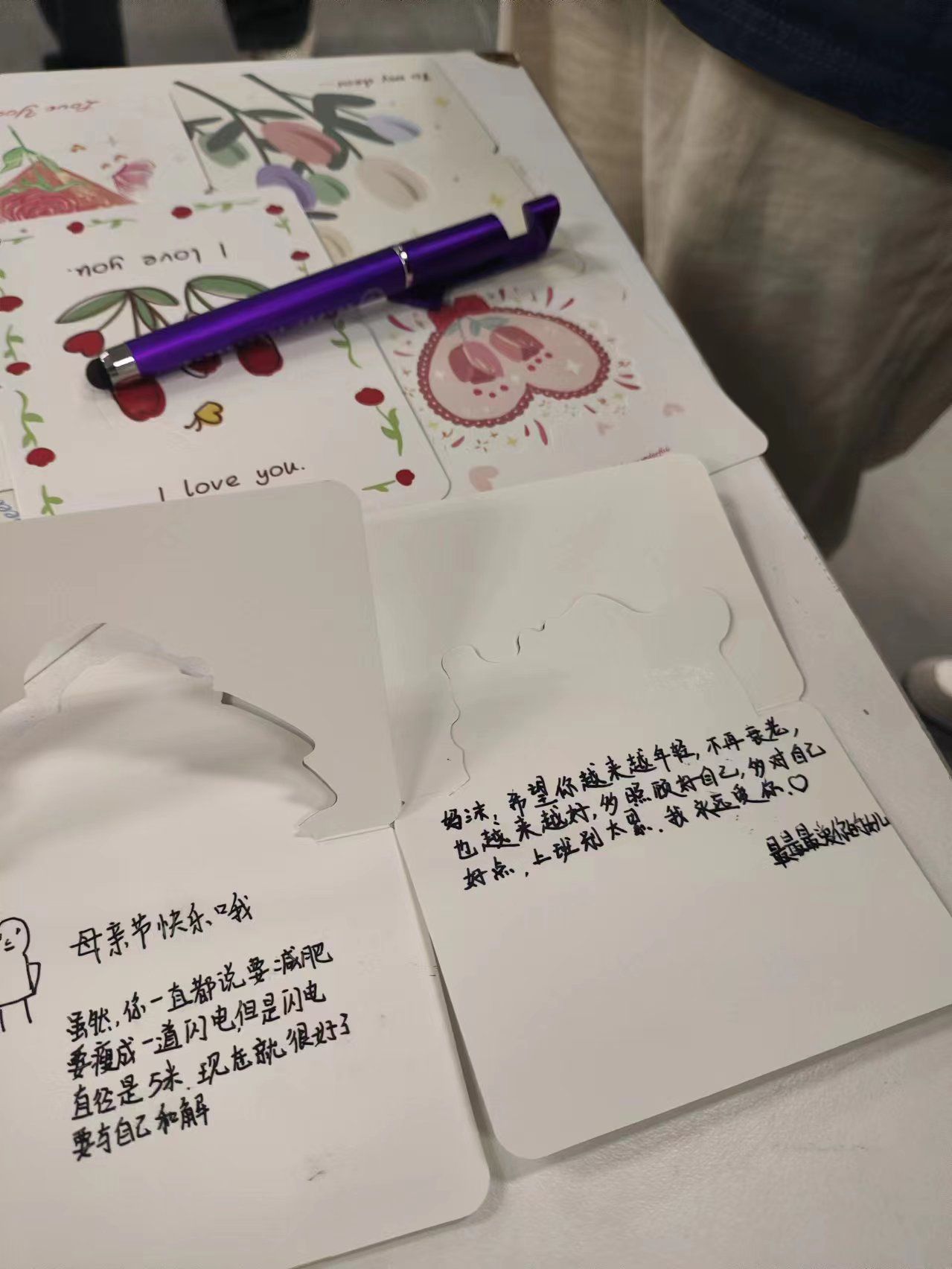 活动现场,同学们纷纷驻足,用文字倾诉对母亲的深情,将内心的感激与爱意镌刻在明信片上,用真挚的情感向母亲致以最崇高的敬意。此外,他们巧手制作色彩斑斓的珠子手串和精美的扭扭棒花束,每一件作品都蕴含着对母亲的深深祝福和无尽感恩。