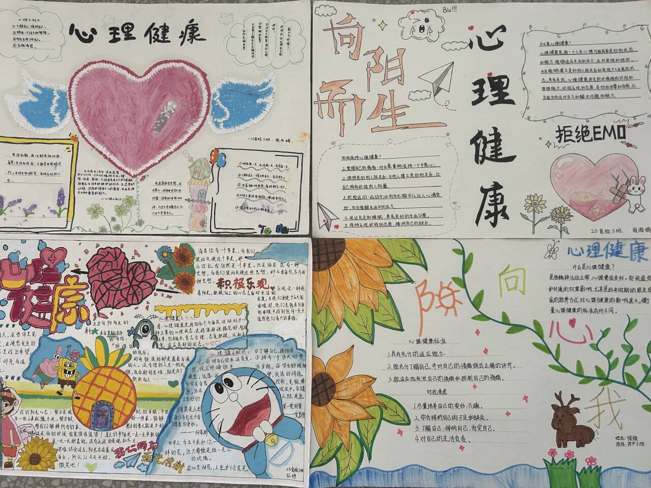 活动四:“我心向阳 逐光启航”——心理手抄报活动。鼓励同学们在画纸上表达心理世界,让同学们在搜集、书写、设计的过程中学习心理健康知识,通过展示传递心灵的力量。