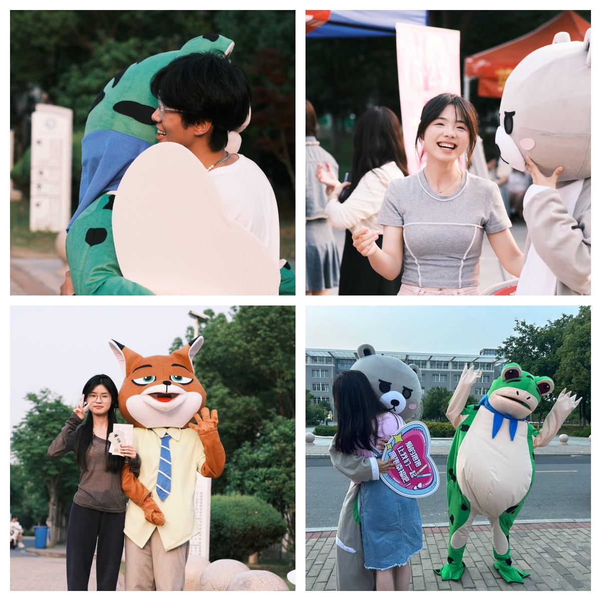 活动二:“感受拥抱的力量”——爱的抱抱活动。志愿者们身穿玩偶服,张开手臂等待拥抱。参与者可以与志愿者拥抱的同时,说出自己的烦恼,释放内心的压力。
