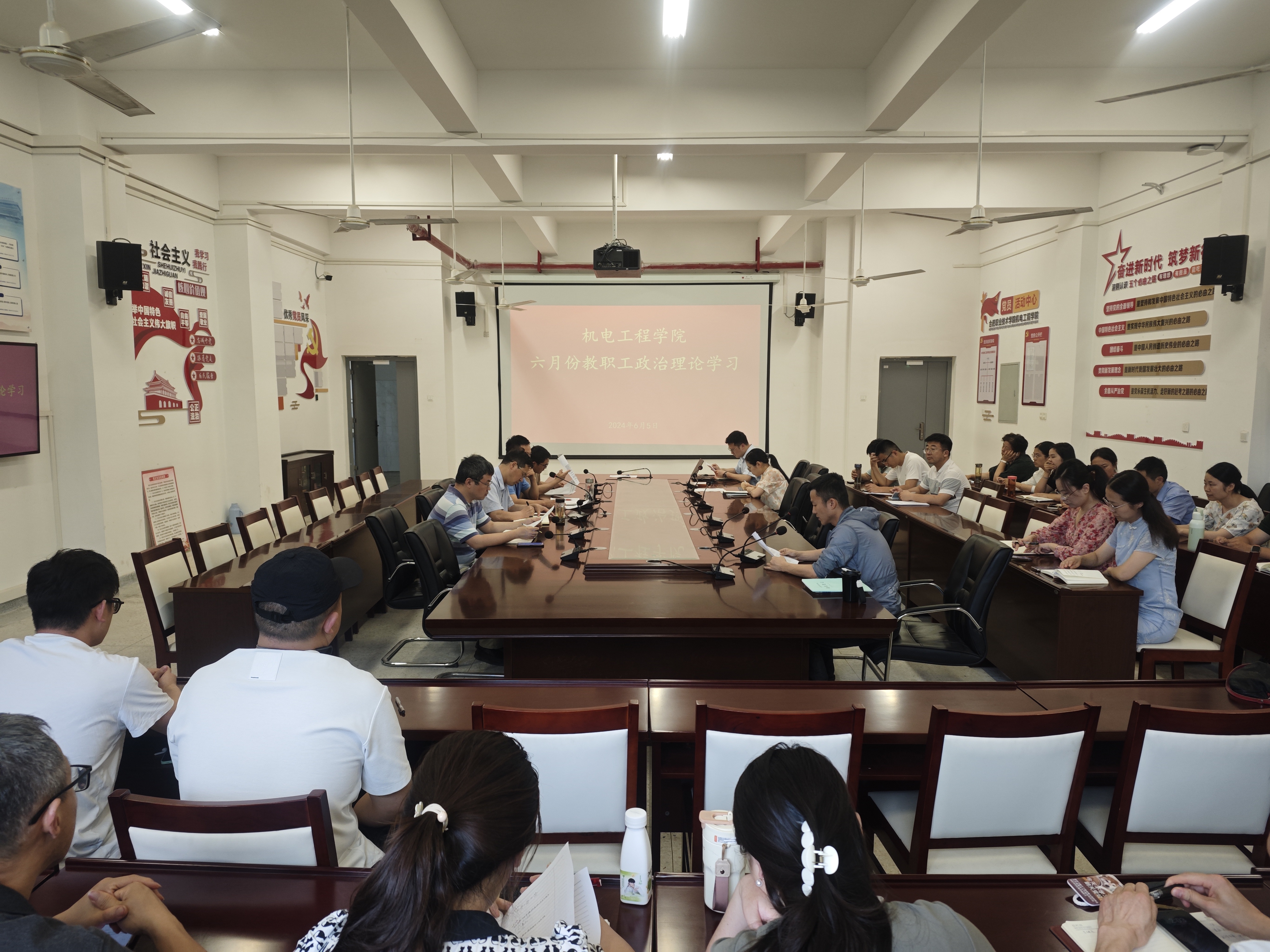6月5日下午,机电工程学院在机电楼二楼会议室组织召开六月份教职工政治理论学习暨党纪学习教育读书会,学院全体教职工参加,会议由该院党总支副书记(主持工作)丁迎春主持。