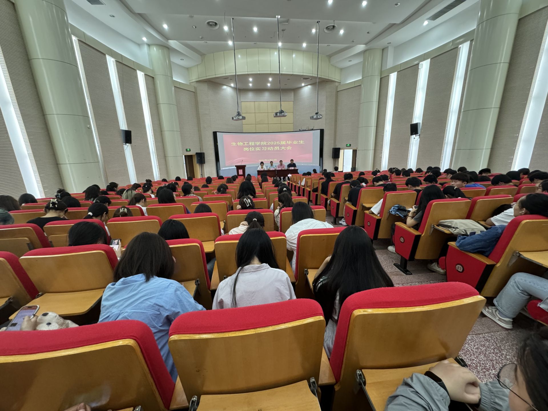 根据教学计划安排,为做好2025届毕业生的岗位实习工作,生物工程学院于6月5日下午,在鼓山校区图书馆二楼报告厅召开2025届毕业生岗位实习动员大会。此次会议采用线上线下结合的方式进行,会议由学院副院长方丽波主持,参会的有学院党政班子成员、实习管理负责老师,2025届毕业班全体同学(部分同学参加线上直播会议)。