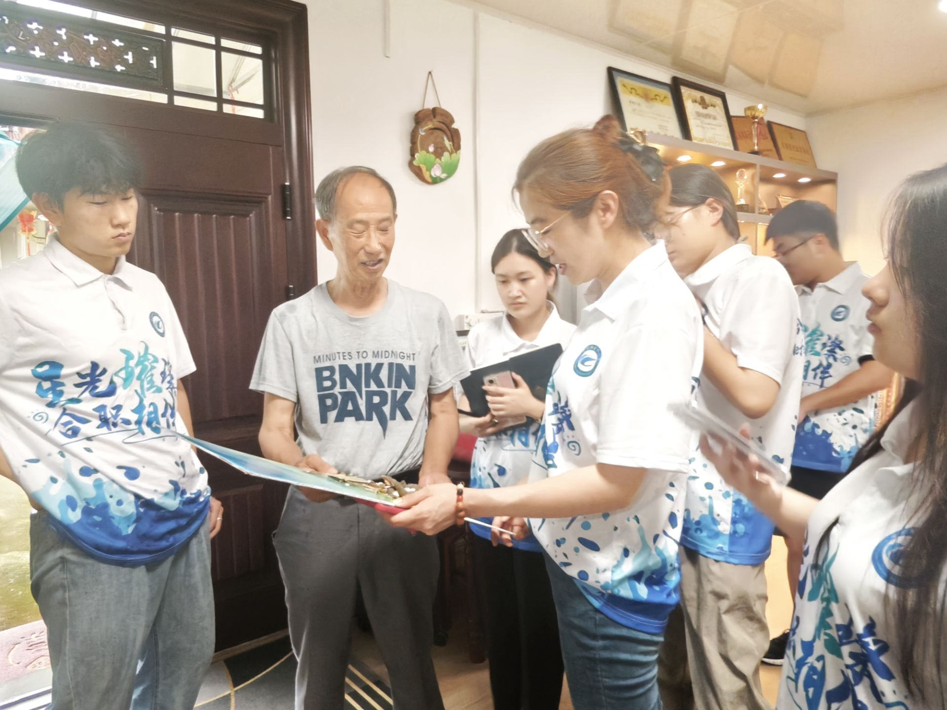 深入非遗殿堂,共赏文化瑰宝。活动伊始,团队一行专程拜访了非遗传承人尹修平先生,近距离领略了传统手工艺的魅力。尹先生不仅展示了其以自然材料创作出的精美艺术品,还亲自传授书法、绘画、剪纸等技艺精髓,让青年学生们在动手实践中深刻感受到传统文化的博大精深,激发了他们保护和传承非物质文化遗产的热情与责任感。