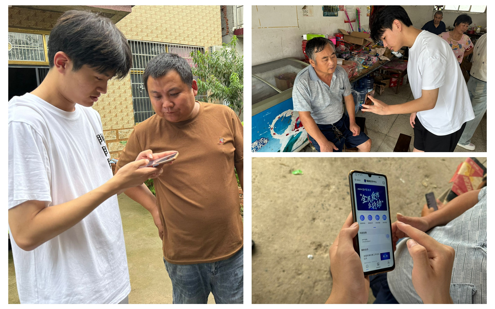“防范诈骗人人参与,法治社会个个受益”。近年来,针对老年人的骗术层出不穷,由于老年人对网络知识的认识欠缺,团队成员帮助村民们安装国家反诈中心APP,并深入浅出地向全村老人们普及了付款软件安全使用和预防短信电话等方面的防诈骗知识,提高了他们对网络诈骗的警惕性。