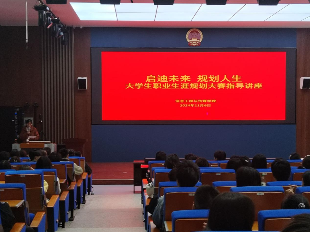为了提高青年大学生的职业生涯规划意识,帮助学生更科学合理规划大学学业,为将来的职业选择、就业以及职场适应奠定基础,也为即将开始大学生职业规划大赛提供参赛指导,11月6日,信息工程与传媒学院在北教202举办职业生涯规划大赛指导讲座。此次讲座由学院党总支委员许雁翎教授主持,吸引了全院各专业近两百名学生参加,现场气氛热烈,互动频繁。