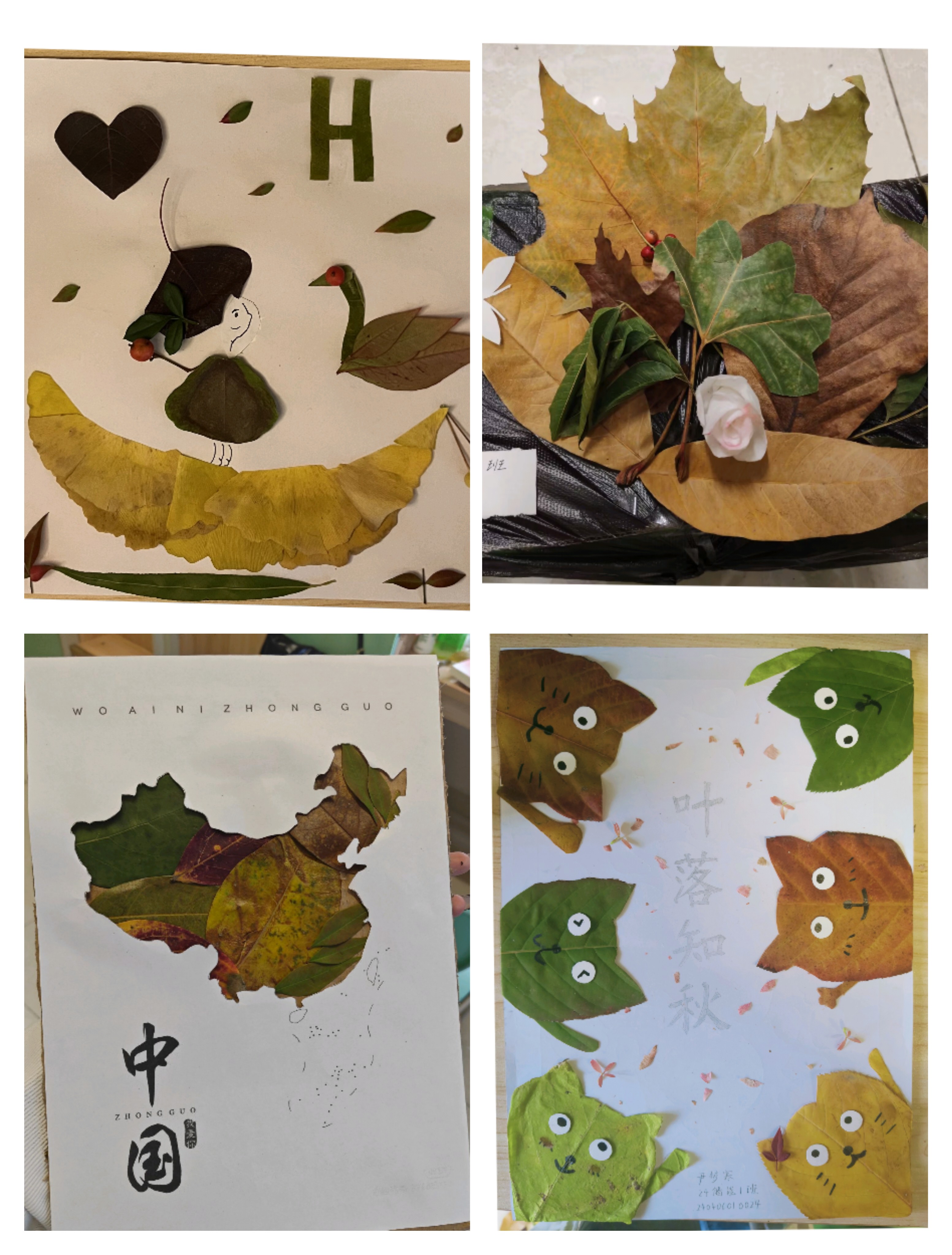 秋日落叶手工活动.11月20—25日,为了引导学生感受自然之美,释放内心压力,该院学生会通过“秋日落叶手工”活动面向全院在校学生征集落叶手工作品,经过评比得出一二三等奖。纷纷坠叶飘香砌,跃然纸上,秋色满篇。同学们走出教室,亲手采集大自然中的落叶。这些落叶,或金黄,或火红,每一片都承载着秋天的故事和色彩。他们用灵巧的双手,将秋叶拼贴成画,编织成花,或塑造成各种动物和人物形象。每一片秋叶,都成为了他们手中的画笔,绘制出属于他们自己的秋日故事。每一件作品都是对秋天的一次独特诠释,展现了学生们对自然美的感悟和对手工艺术的热爱。
