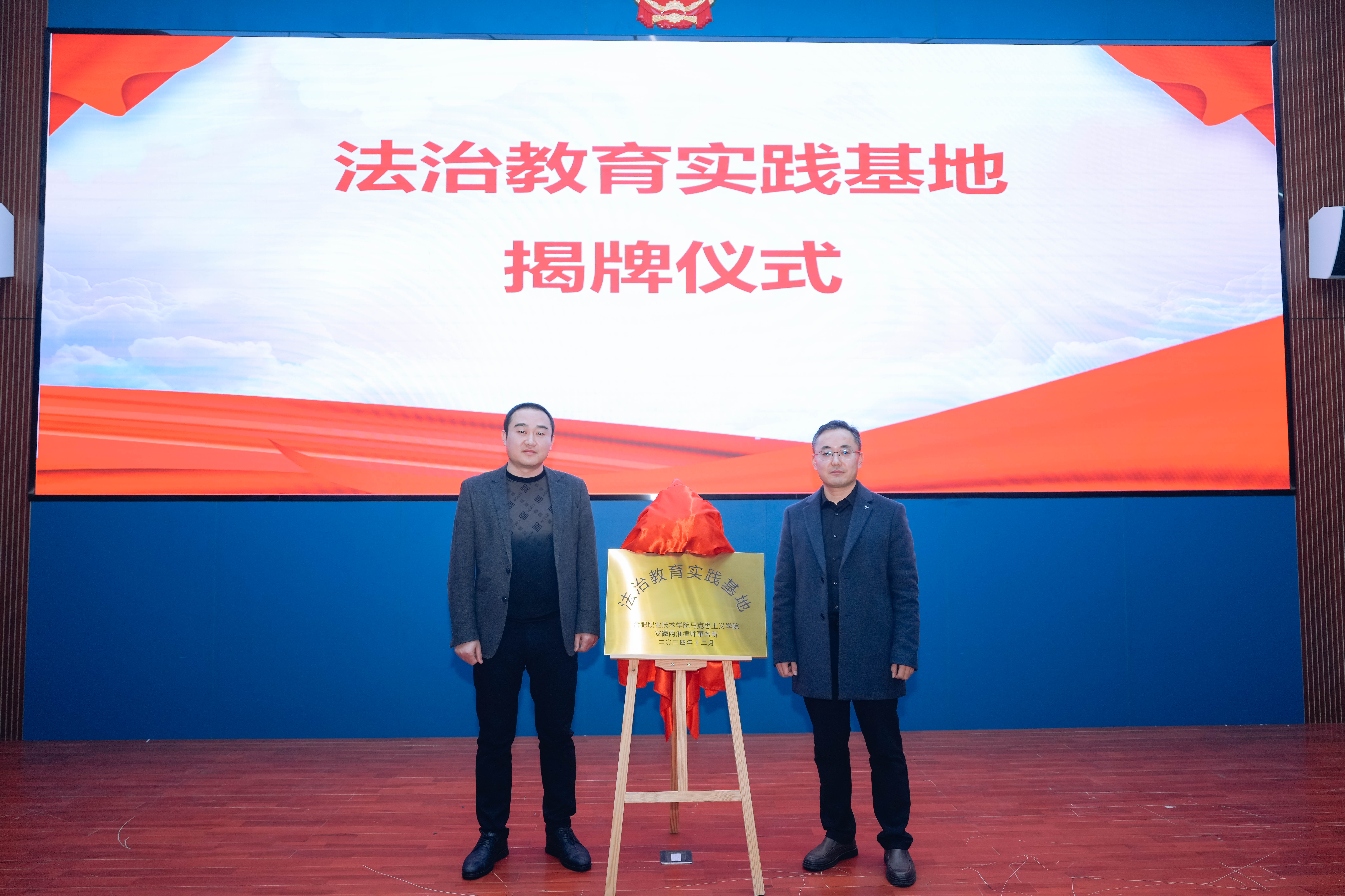 为搭建高校和律所共建的平台,前期在广泛合作、充分交流的基础上,马克思主义学院积极探索青年法治教育的新思路、新方法、新途径,与安徽两淮律师事务所共建法治教育实践基地。现场李世文主任和王文飞书记共同为“法治教育实践基地”揭牌。该基地的建立,搭建了双方合作交流的平台,有利于形成常态化、规范化交流机制,有利于推动法治宣传教育从理论走向实践。